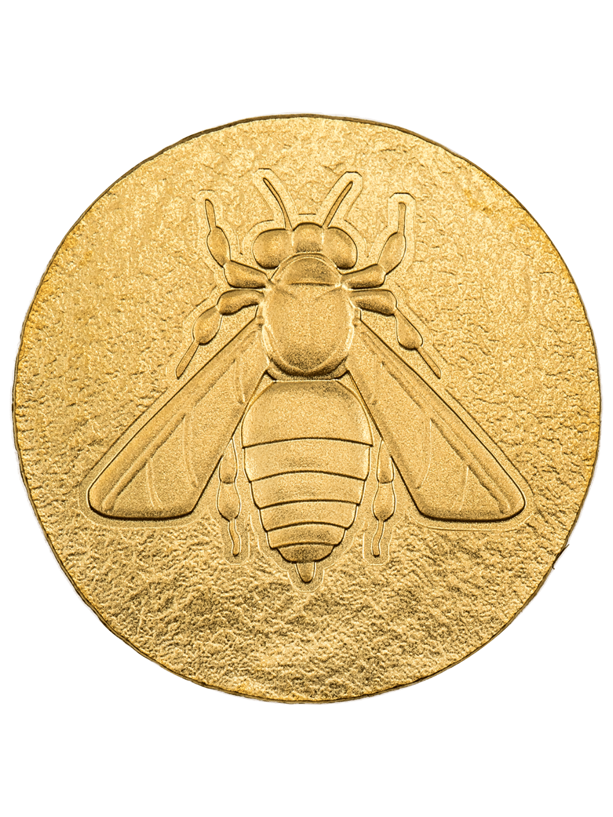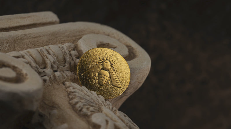 HONEY BEE Ephesos Ancient Greece Gold Coin is dedicated to the Honey Bee as the symbol of the ancient city Ephesos, the centre of worship for the Greek goddess Artemis, allegedly associated with Artemis. The coin in Silk Finish has a very interesting design with a remarkable Greek style and it comes in a capsule. Limited mintage of 15,000 pieces worldwide.