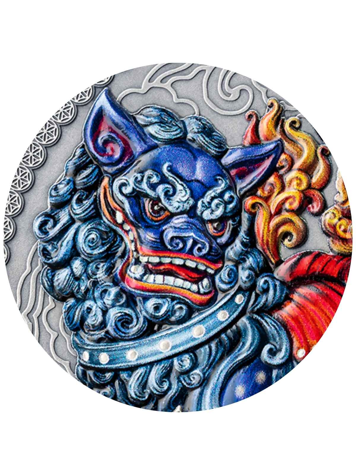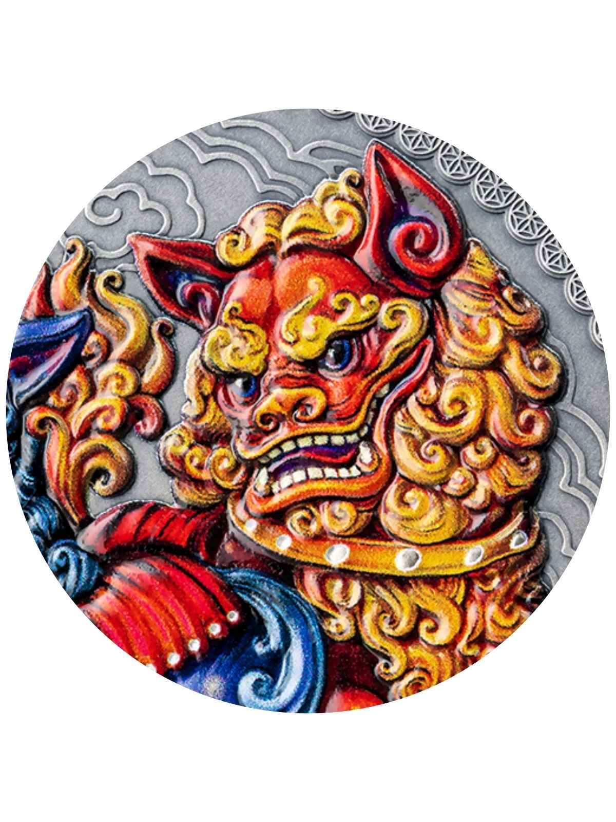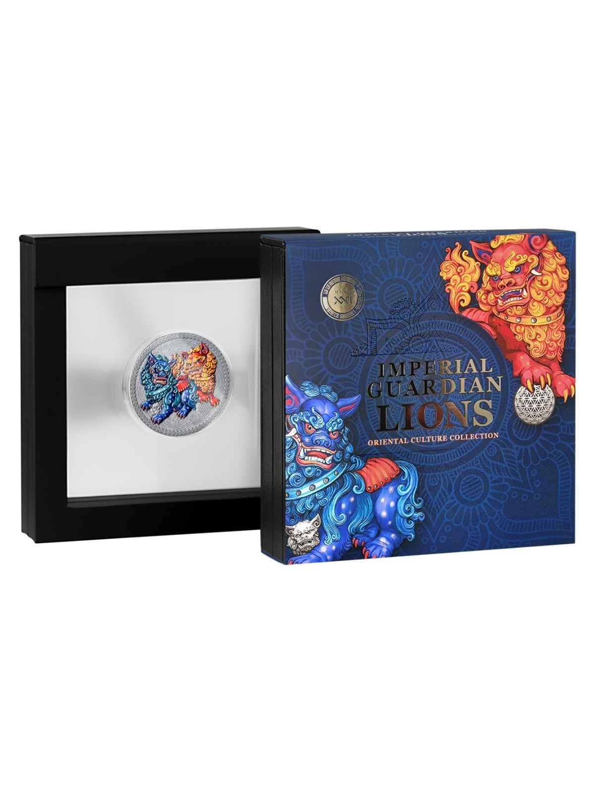 IMPERIAL GUARDIAN LIONS Oriental Culture Silver Coin is the new issue in the "Oriental Culture" series and portrays two ancient Chinese symbols: The Imperial Guardian Lions. The coin has Antique Finish quality, has a selective bright coloration and comes in a case, along with the Certificate of Authenticity. Limited mintage of only 888 pieces worldwide.