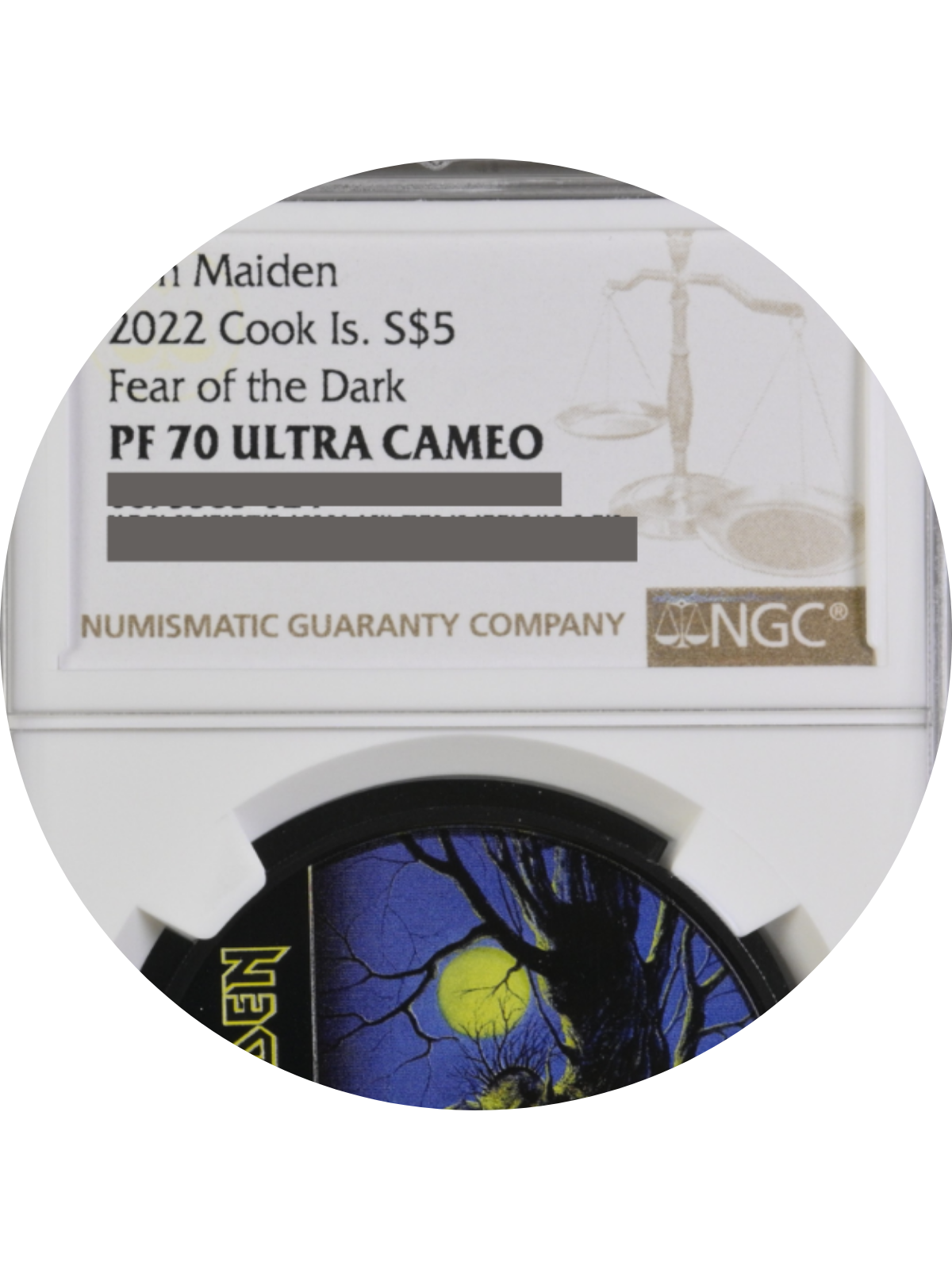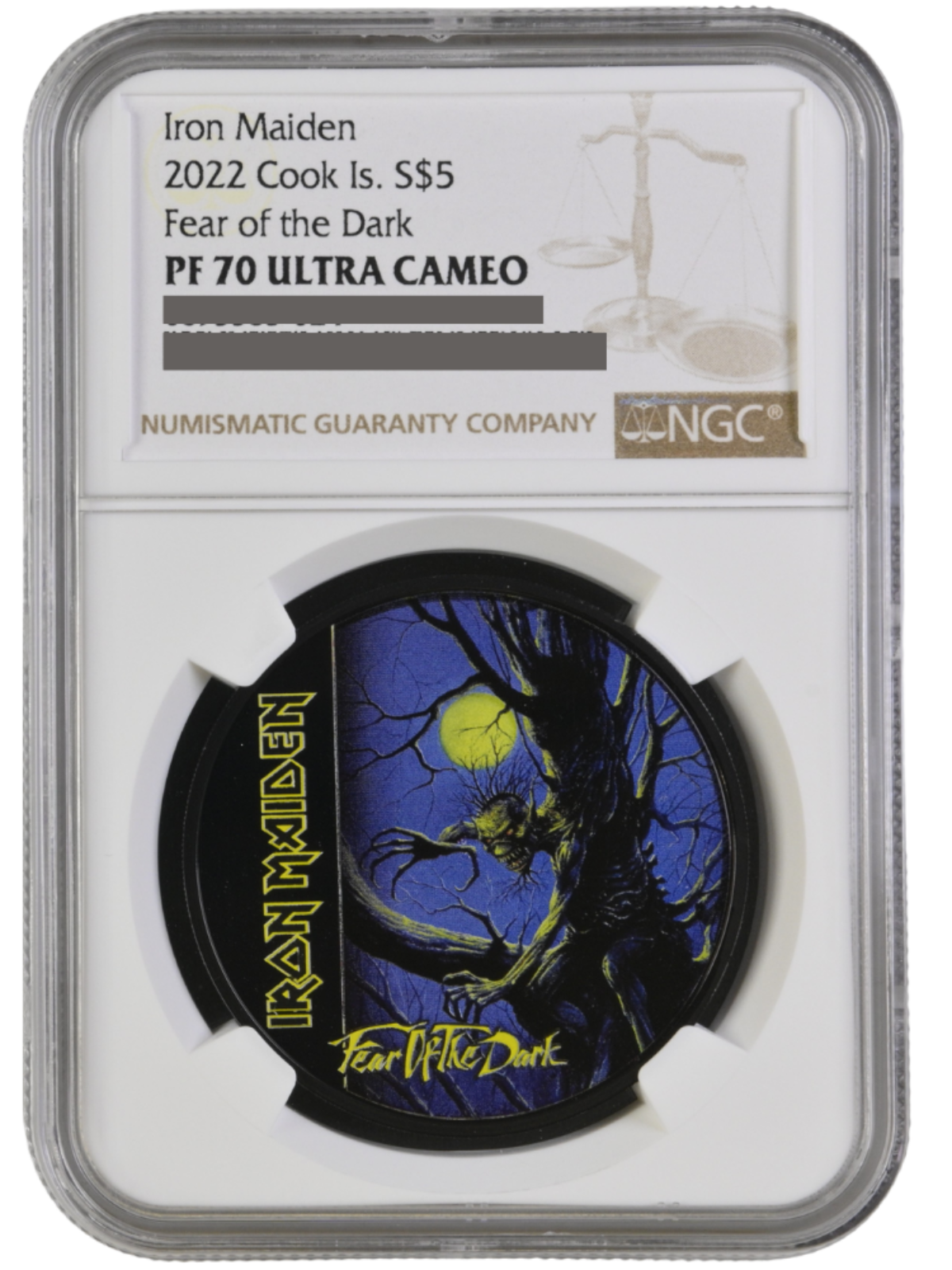 Iron Maiden-FEAR OF THE DARK 1 Oz Silver Coin $5 Cook Islands 2022- NGC Graded PF 70 Ultra Cameo
