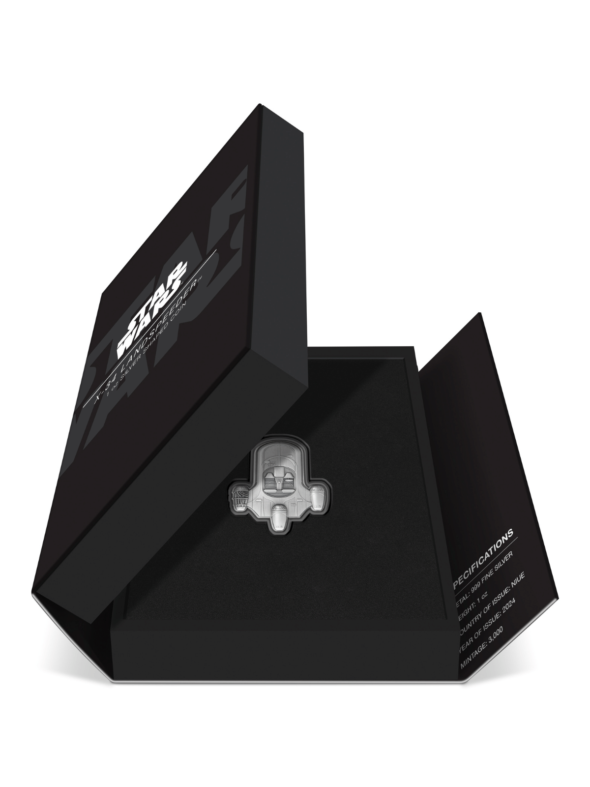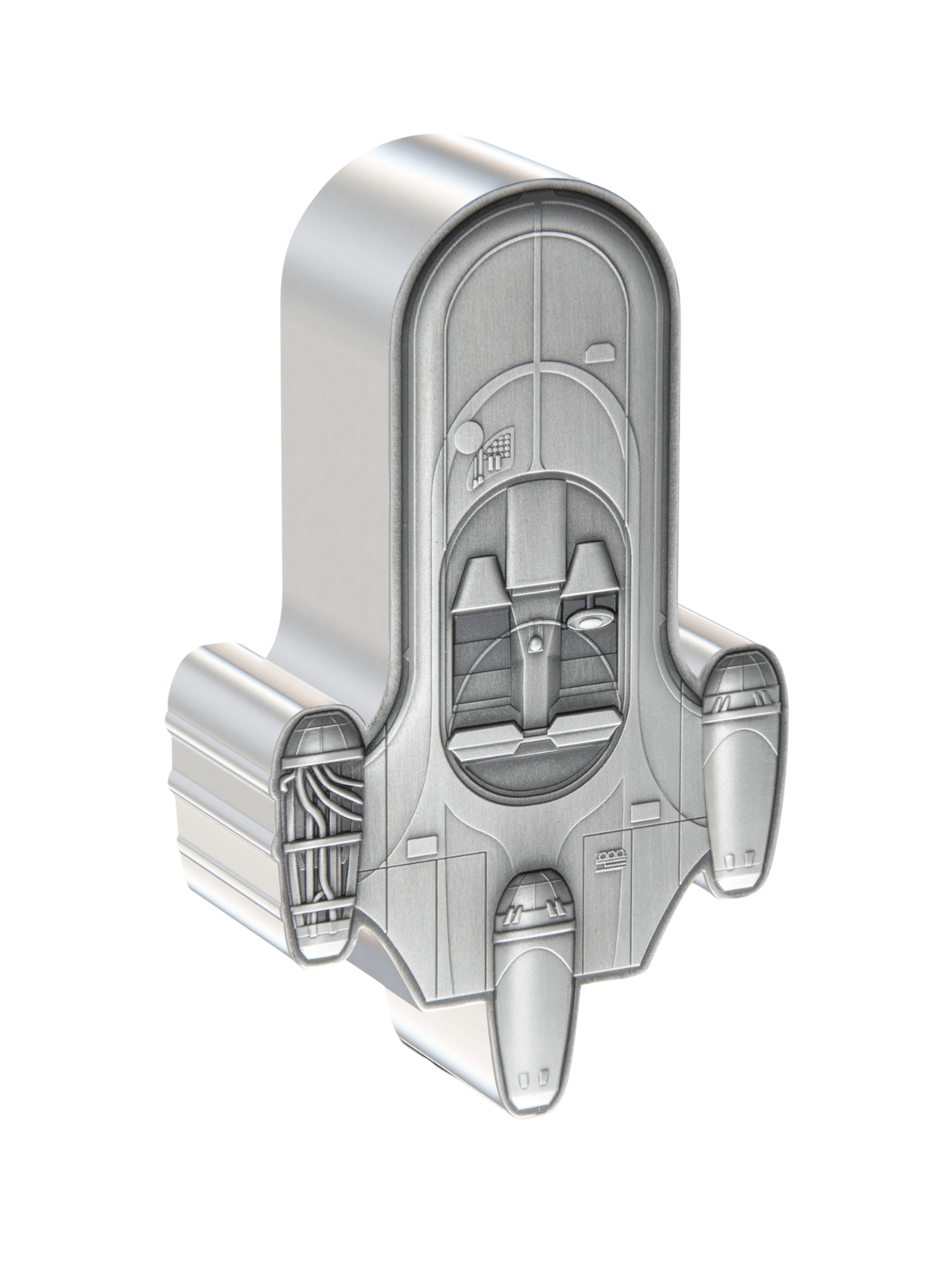 LANDSPEEDER Star Wars Vehicles 1 Oz Silver Coin is dedicated to the X-34 Landspeeder, a civilian landspeeder of mundane design in the Star Wars universe. The coin has an Antique Finish quality and has the shape of the X-34 Landspeeder, featuring its powerful repulsor lift engine and three air-cooled thrust turbines. It comes in a themed case, along with a Certificate of Authenticity. Limited mintage of 3,000 pieces worldwide!
