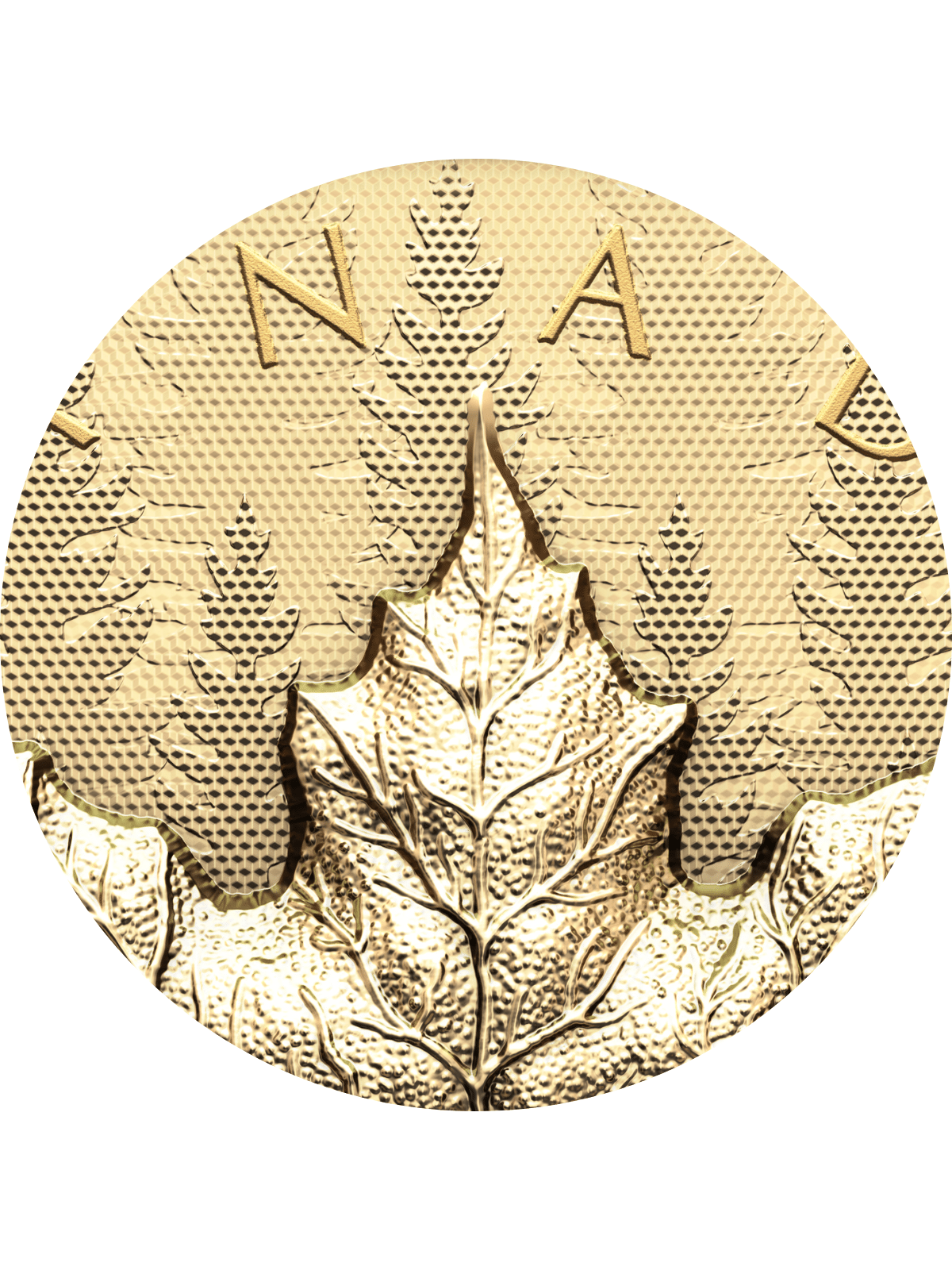 The Gold Maple Leaf (GML), presented in ultra-high relief, is beautifully set against a backdrop inspired by Canada's vast forests, which cover nearly 40% of the nation's total land area. These forests are a rich tapestry of diverse tree species like the eastern sugar maple and the central balsam fir, integral to the Canadian landscape. This deep connection with nature has inspired the new "heart of the forest" pulsating field pattern on the 1 oz. 99.99% pure gold coin, where a scene of mist-shrouded trees subtly emerges and recedes behind the GML.