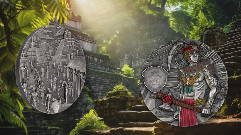 MAYANS 2 Oz Silver coin is the third release in the "Lost Civilizations" series and is dedicated to the Maya culture. The coin features the Smartminting technology, has an Antique Finish quality and selective coloration. It comes in a case, along with the Certificate of Authenticity. Limited mintage to 555 pieces worldwide!