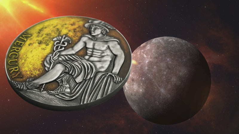 MERCURY Planets and Gods 3 Oz Silver coin is the new issue from the “Planets and Gods” series. In this edition – Mercury. The coin features a wonderful digital coloration, has a nice Relief, has a great design, has an Antique Finish quality and comes in a case, along with the Certificate of Authenticity. Limited mintage of 500 pieces worldwide!