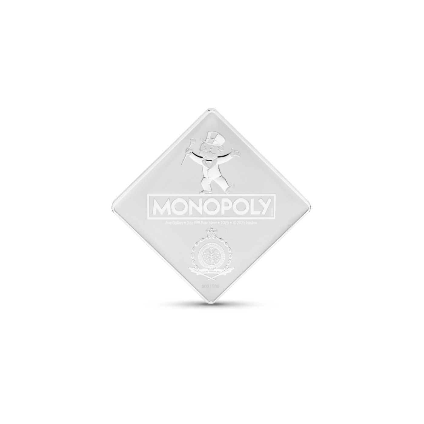 With its strictly limited mintage of just 500, this Monopoly™ 90th Anniversary silver coin is a rare tribute to one of the most iconic board games in history. Whether you’re a Monopoly™ fan, a collector, or a silver investor, this highly detailed and beautifully crafted piece is a valuable addition to any collection.