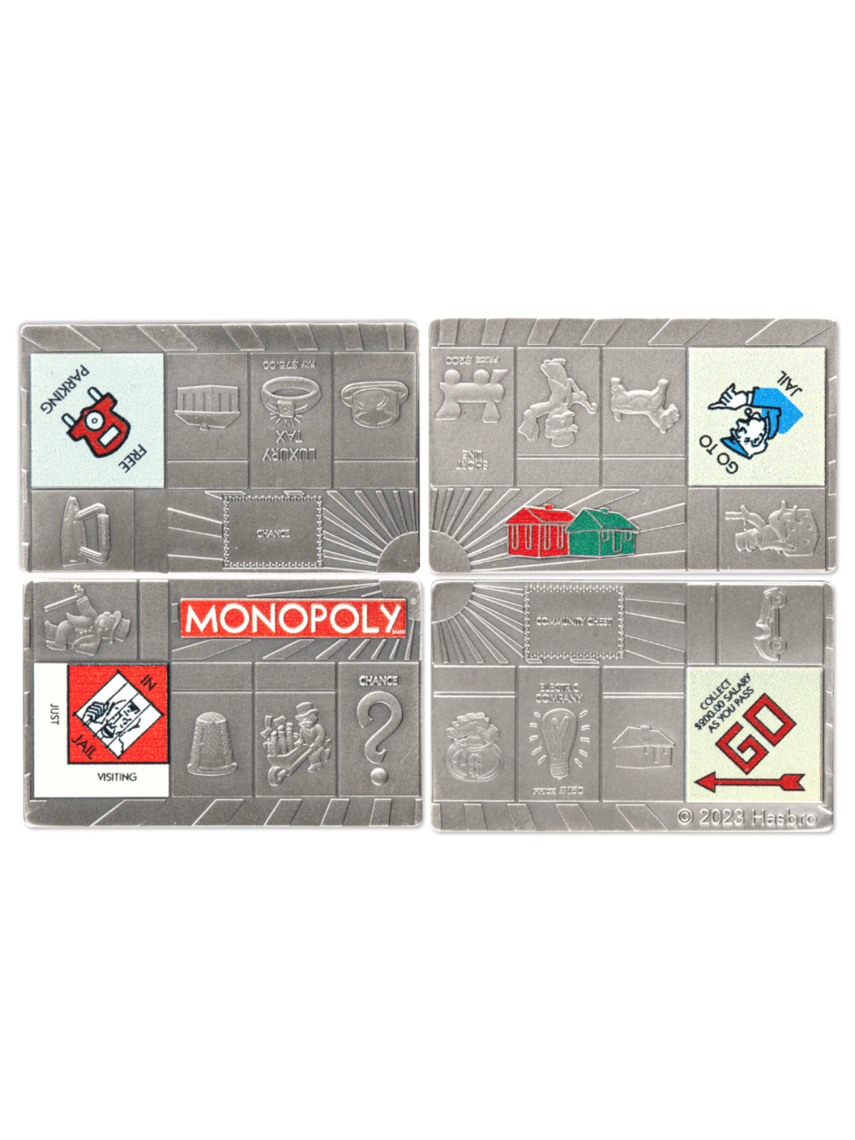 Experience the best-selling board game in the world with partial colour print as a unique coin set consisting of 4 x 1 oz pure Silver bars.