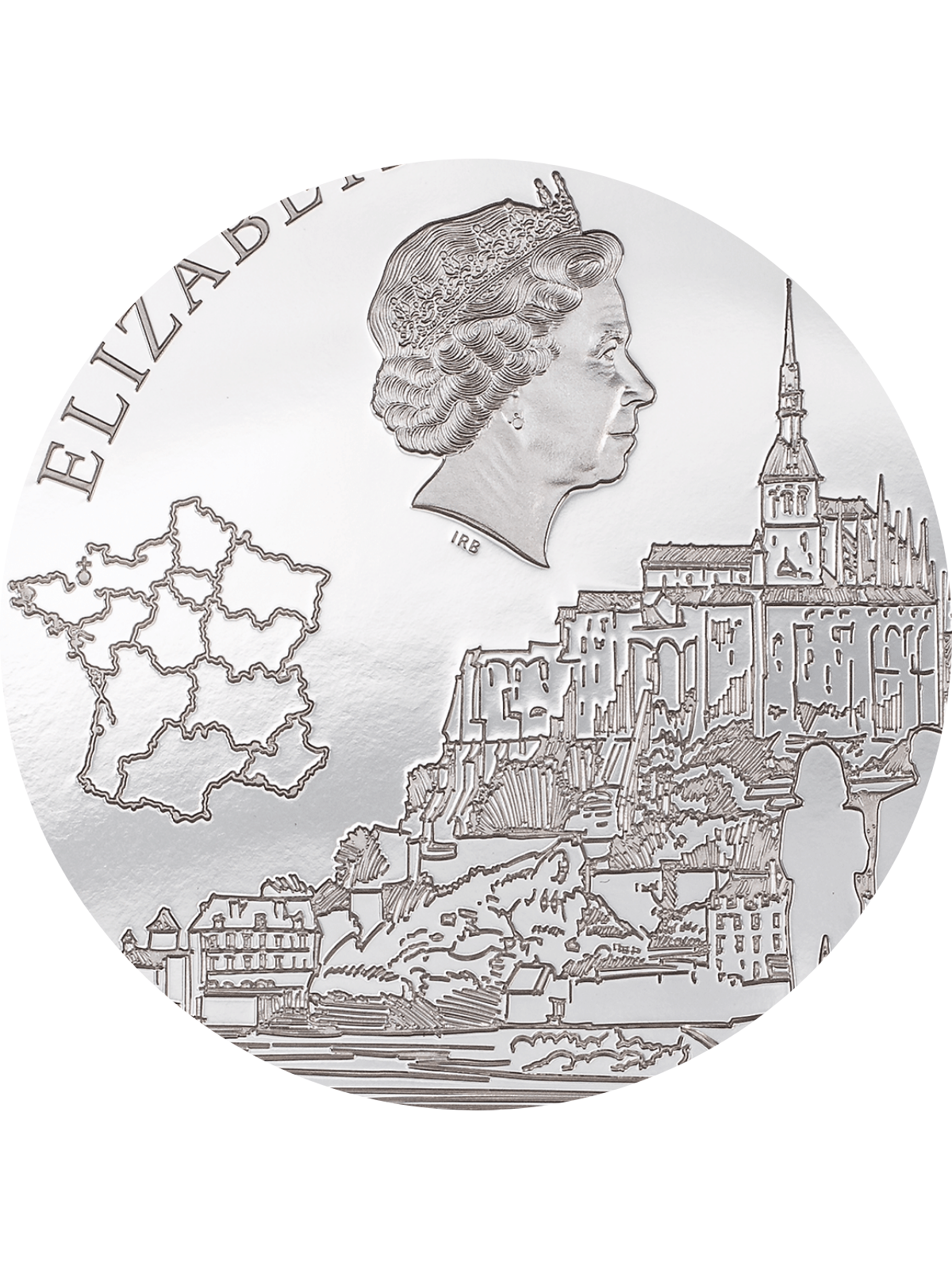 MONT SAINT MICHEL 5 Oz Silver coin depicts stunning landmark of Mont Saint Michel, an UNESCO World Heritage Site since 1979. The coin has a Proof quality, features the Smartminting technology and has an Ultra High Relief. It comes in a case, along with the Certificate of Authenticity. Limited mintage to 500 pieces worldwide.
