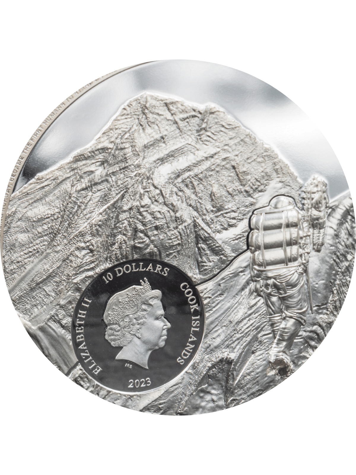 About the MOUNT EVEREST First Ascent 2 Oz Silver Coin $10 Cook Islands 2023