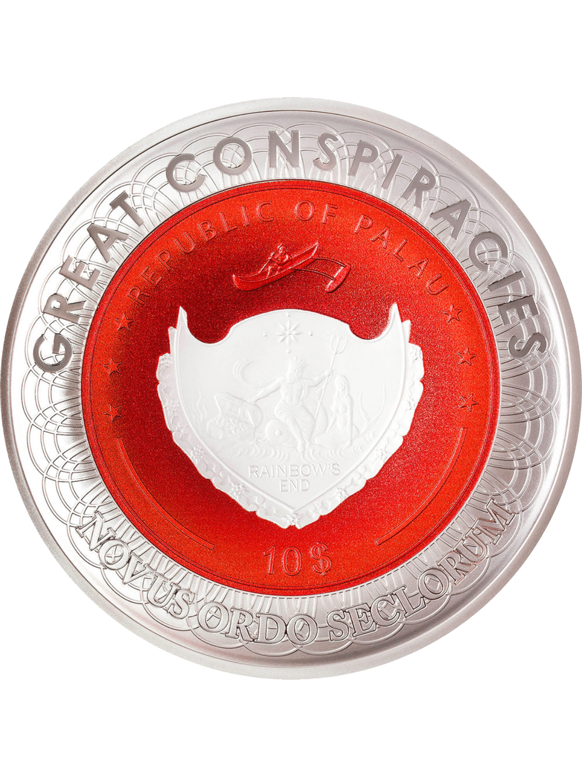 About the NEW WORLD ORDER Great Conspiracies 2 Oz Silver Coin $10 Palau 2021