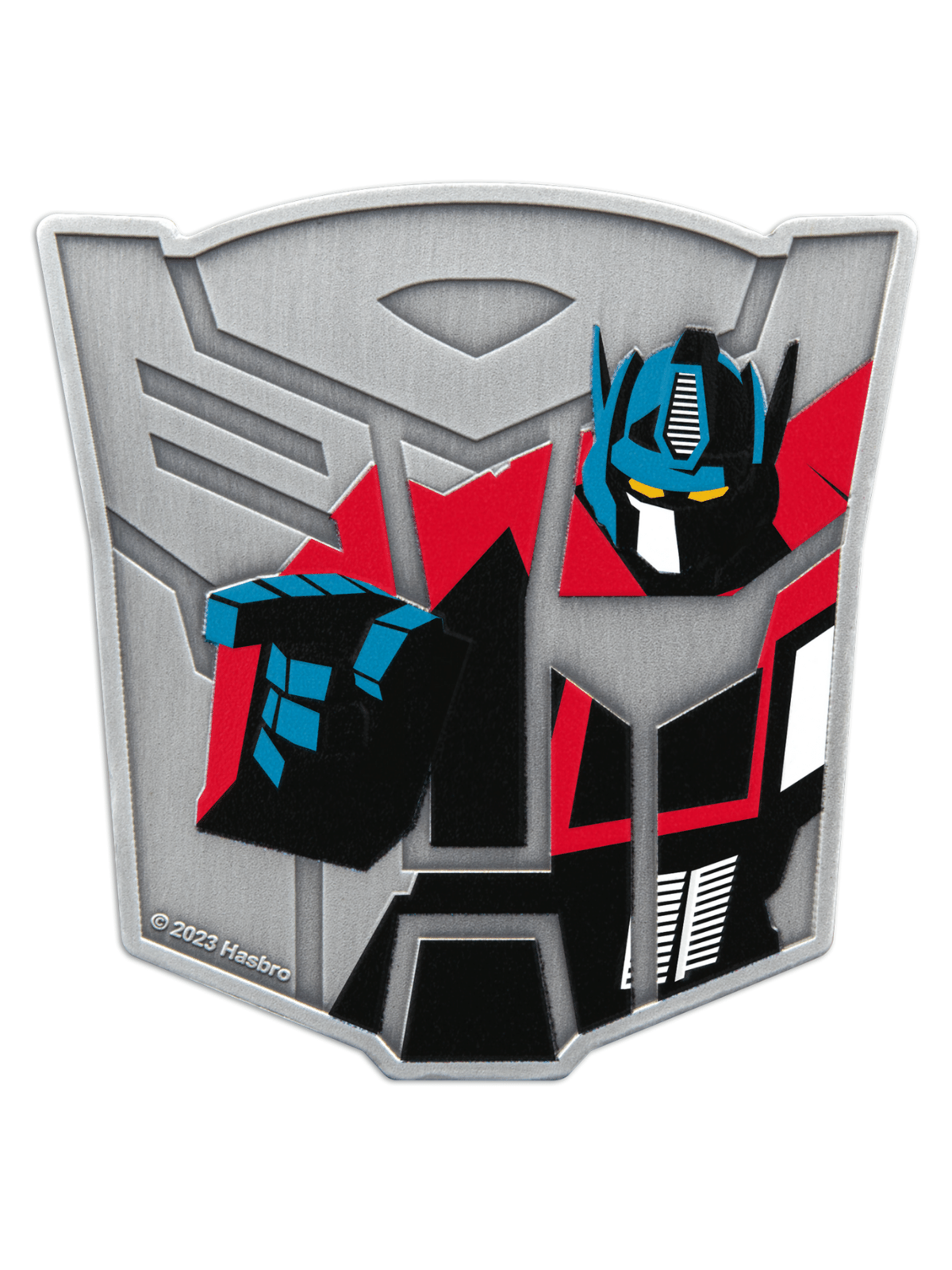 OPTIMUS PRIME Transformer 1 Oz shaped Silver coin is the dedicated to one of the most famous Transformer by HASBRO: Optimus Prime. The coin has a wonderful design, has an Antique Finish quality, features wonderful coloration and comes in a case, along with the Certificate of Authenticity. Limited mintage of 1499 pieces worldwide!