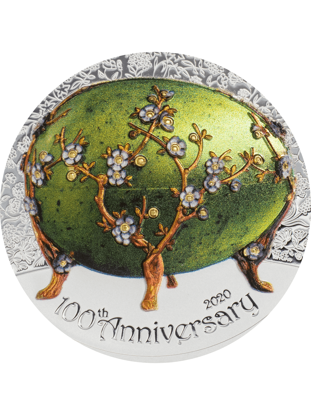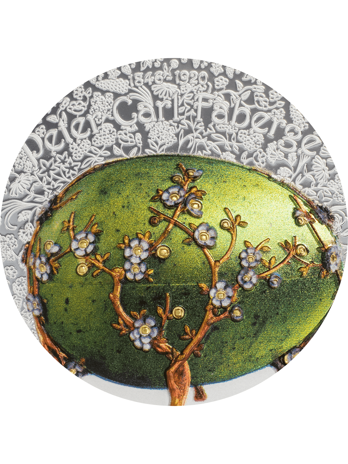 FABERGE EGG Peter Carl 2 Oz Silver coin is dedicated to the 100th anniversary of one of the most famous Russian jeweller – Peter Carl Fabergé. The coin features the Smartminting technology, has a beautiful colouration and comes in a themed case, along with the Certificate of Authenticity. Limited mintage to 888 pieces worldwide!