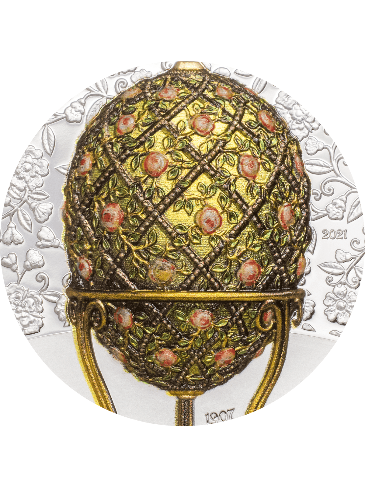 About the FABERGE EGG Rose Trellis 2 Oz Silver Coin 1000 Togrog Mongolia 2021