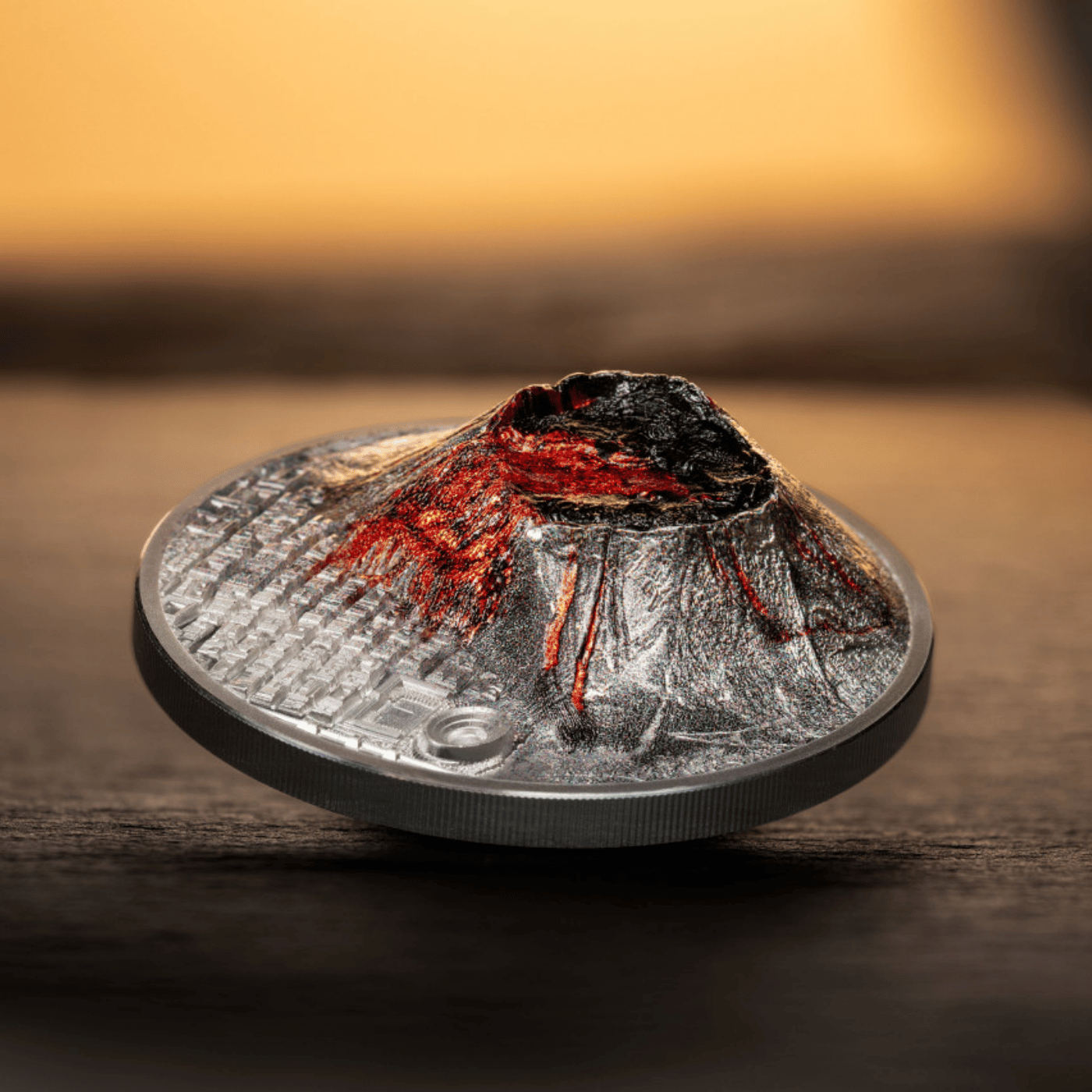 Pompeii was a flourishing ancient Roman city near modern-day Naples in Italy that was destroyed by the eruption of the volcano Vesuvius in 79 AD. The eruption buried the city under a thick layer of ash, pumice and lava, leaving it virtually untouched for centuries. This impressive coin shows exactly this tragic moment of the eruption. On one side is Vesuvius, depicted in relief almost 10 mm high thanks to the smartminting® 4.0 technique. You can clearly see the deadly lava flows making their way into the city depicted at the foot of the volcano. Two gladiators fighting in the nearby arena have no idea of the threat that is inexorably approaching. This coin is an impressive snapshot, both historically and above all, technically