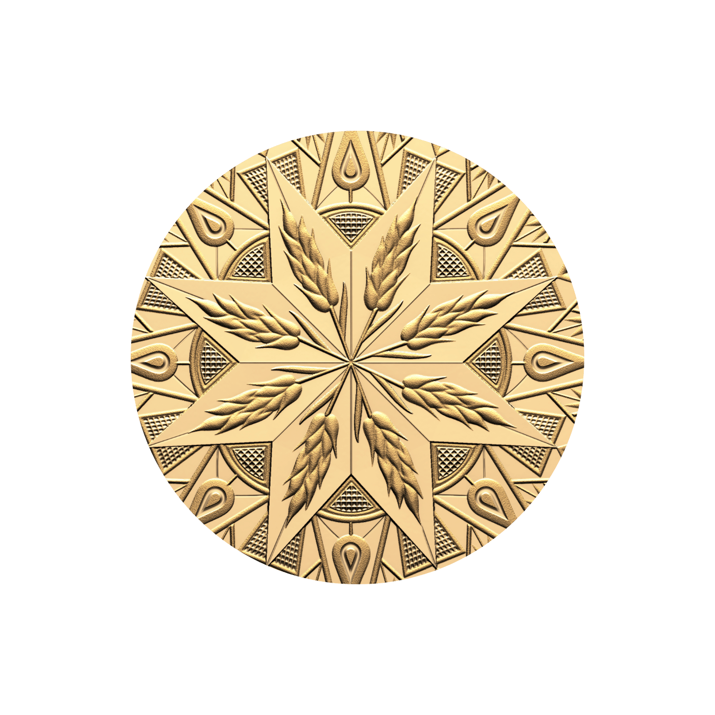 What satisfaction the harvest brings, when the hard-won fruits of spring and summer’s labour are finally in! The reverse of this 99.99% pure gold pysanka coin is an exquisite work of art that celebrates the life-sustaining properties of wheat, which adorns each point of the Ukrainian eight-pointed star that is a powerful expression of love, devotion and passion. Behind that central star, the design’s joyous spirit only grows as several more stars—each one adorned with meaningful motifs—join in this spellbinding celebration of the fertility, prosperity and abundance that reward the ambition of spring.
