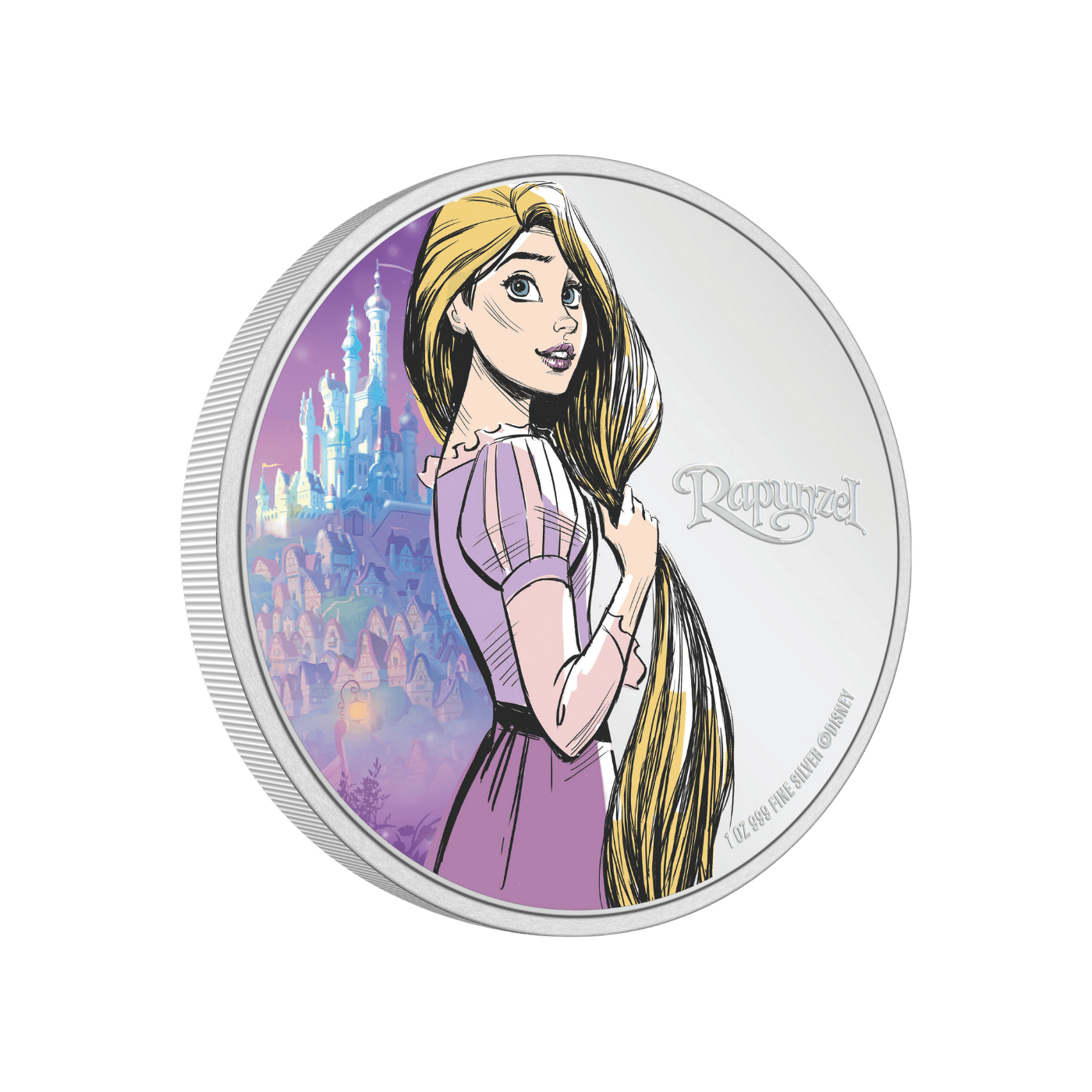 This 1oz pure silver coin is the second release in our Disney Princess series. It captures Rapunzel’s radiant beauty in stunning detail.