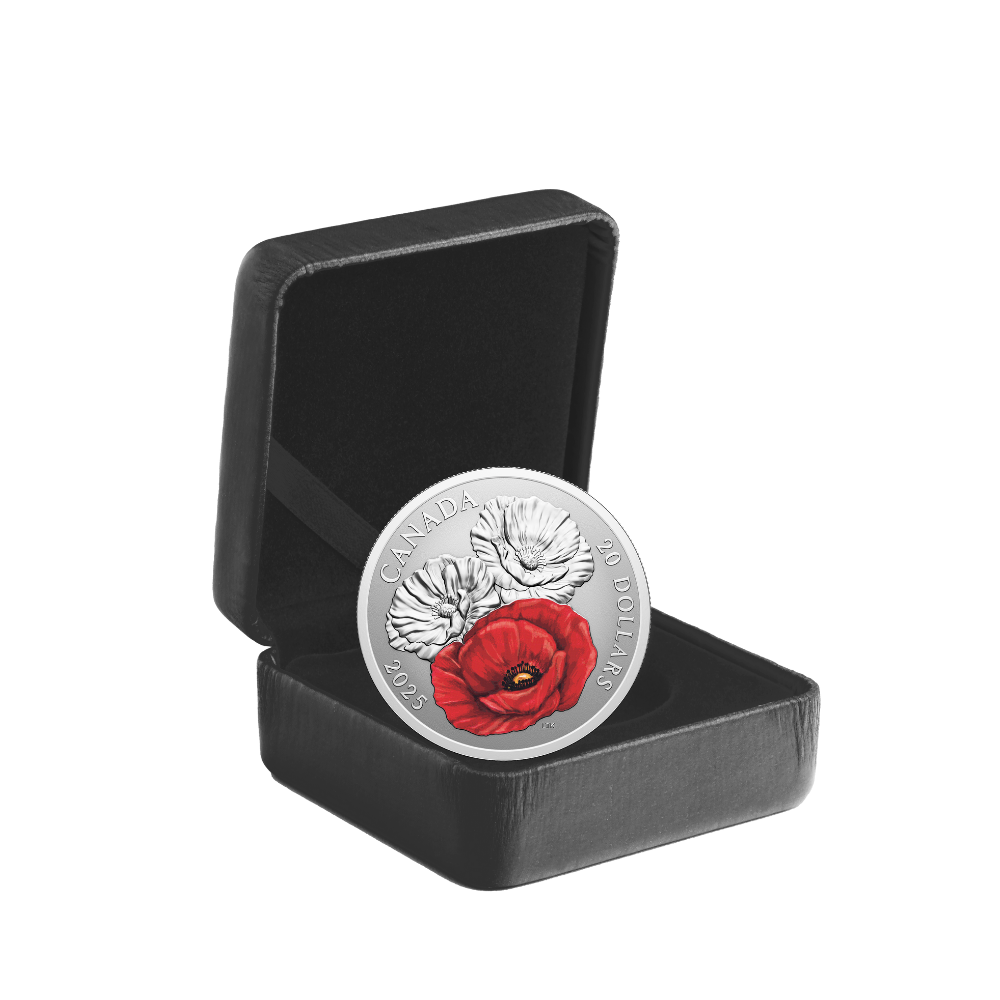 The 2025 Remembrance Day coin captures that enduring spirit through a beautifully engraved design featuring lifelike poppies, including one bright red bloom that stands out in color. The design pays homage to the immortal poem In Flanders Fields, written 110 years ago by Canadian John McCrae, whose words continue to inspire generations.