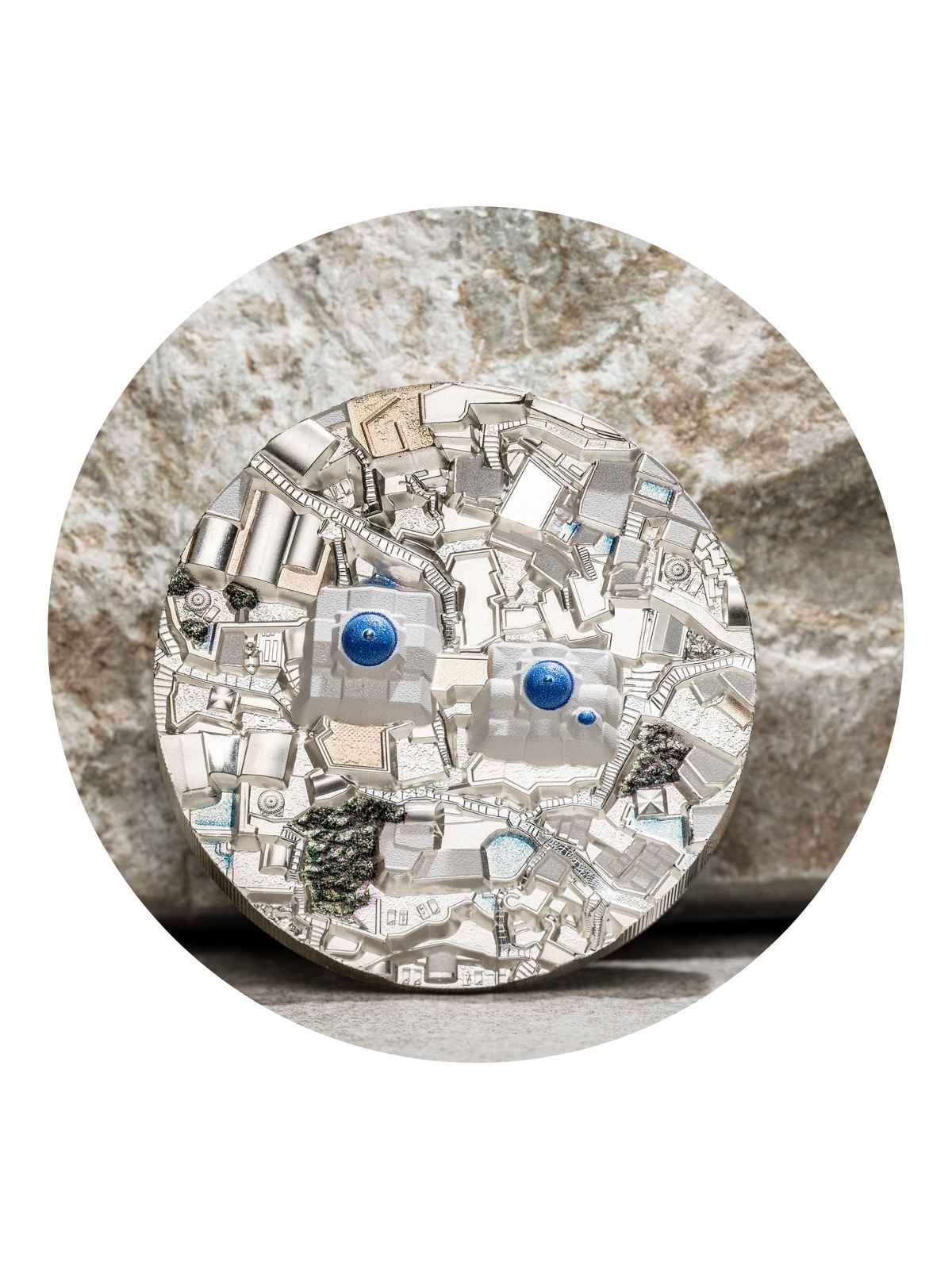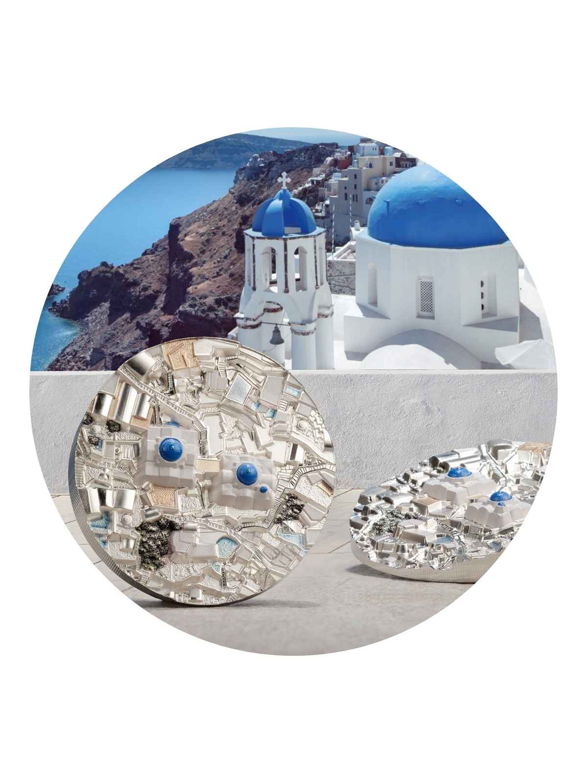 About the SANTORINI Bucket List 5 Oz Silver Coin $25 Cook Islands 2024