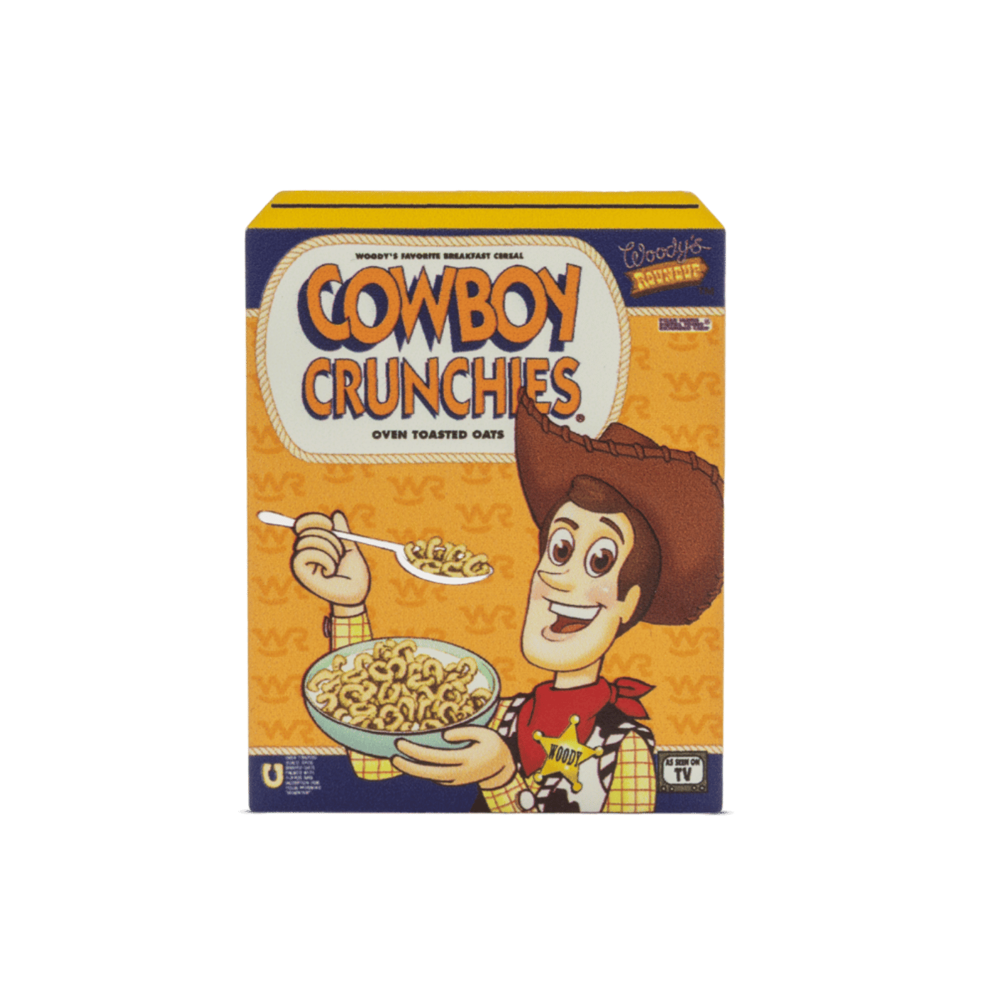 - Creative design resembles a Cowboy Crunchies cereal box in color, with the spoon left engraved in mirror-finish.