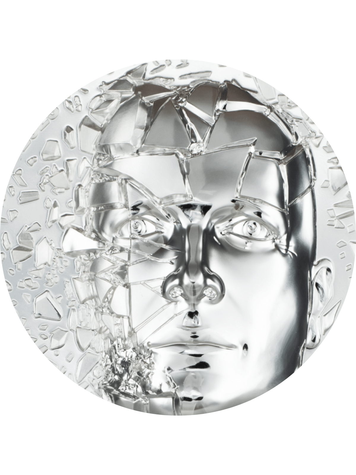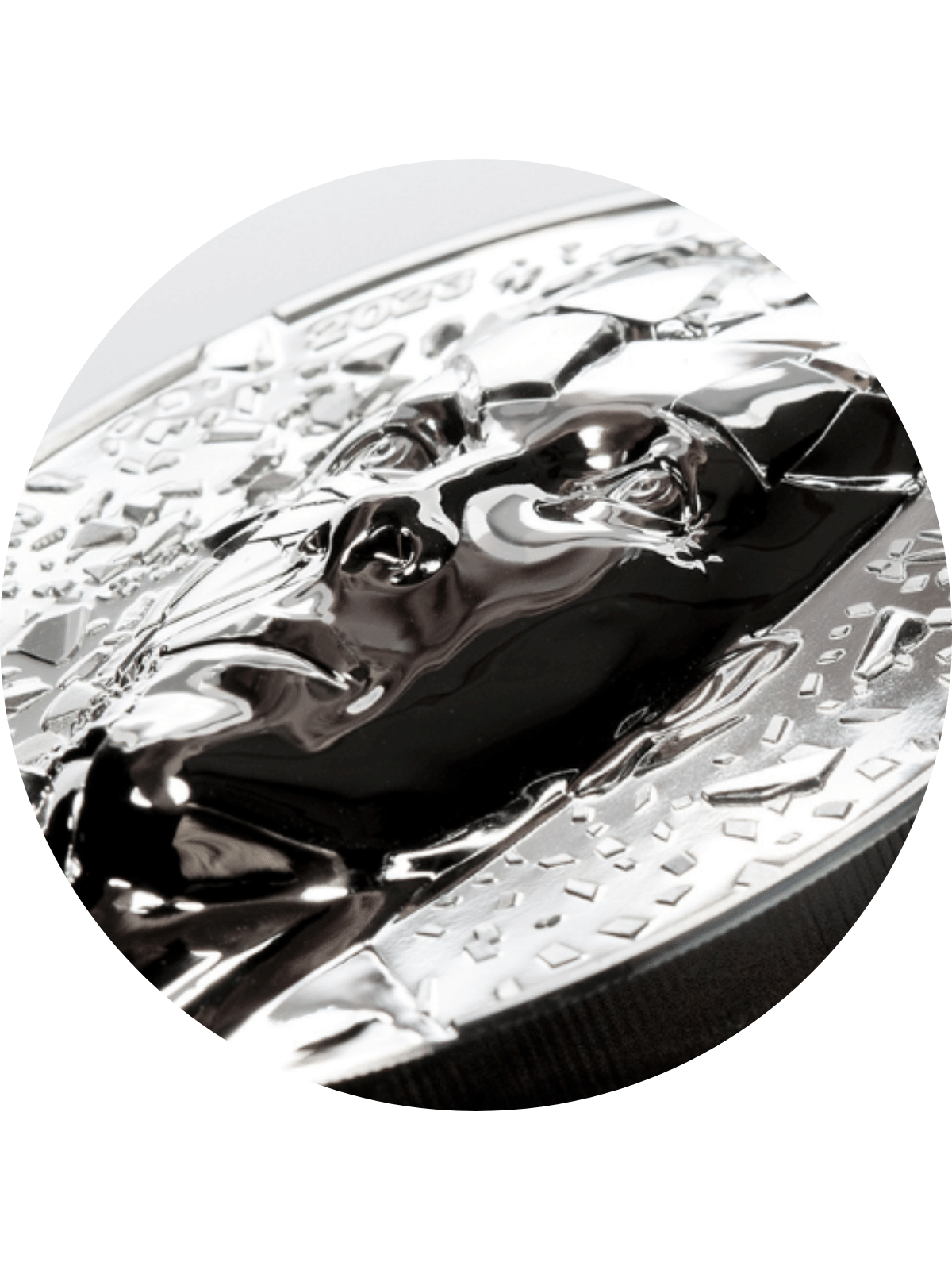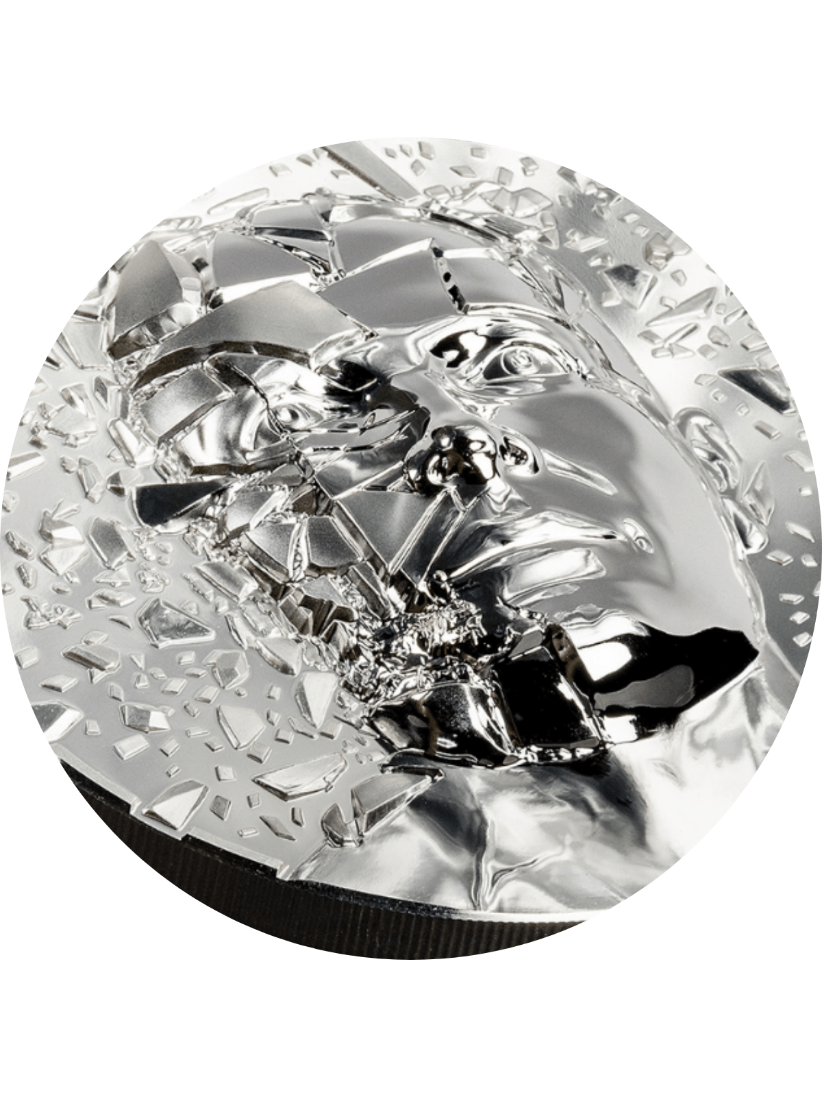 SILVER BURST 3 Oz Silver coin is the third edition of the "Silver Burst" series, this is a captivating coin that exudes timeless elegance. Unlike its predecessors, the latest edition shows the male’s face at close range. While light dances gracefully across the multifaceted surface, delicate slivers pierce not only the coin’s edge but also the limits of imagination. The coin features Smartminting technology with Proof quality and incredible Ultra High Relief and comes in an elegant case, along with the Certificate of Authenticity. Limited mintage of 999 pieces worldwide.