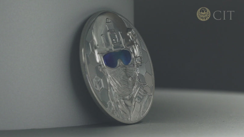 SPECIAL FORCES 1 Oz Gold coin is a new release in the “Real Heroes” series and is dedicated to the Special Forces. The coin features the Smartminting technology, has an Ultra High Relief, a Proof quality and it’s partially coloured. It comes in a case, along with the Certificate of Authenticity. Limited mintage to 199 pieces worldwide!