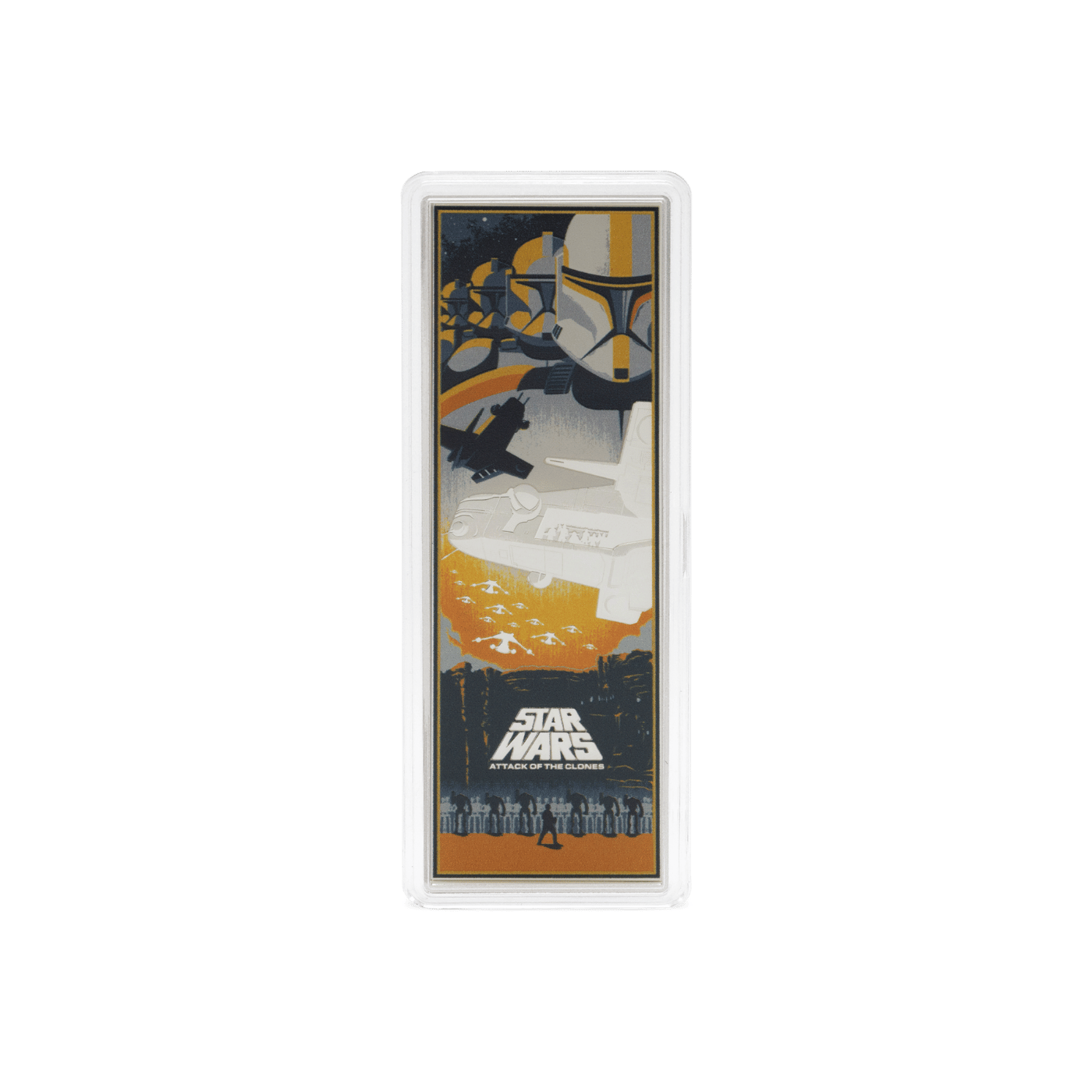 - Iconic Poster Artwork – Captures the intense battle on Geonosis, featuring Jedi, Clone Troopers, and battle droids in stunning detail.