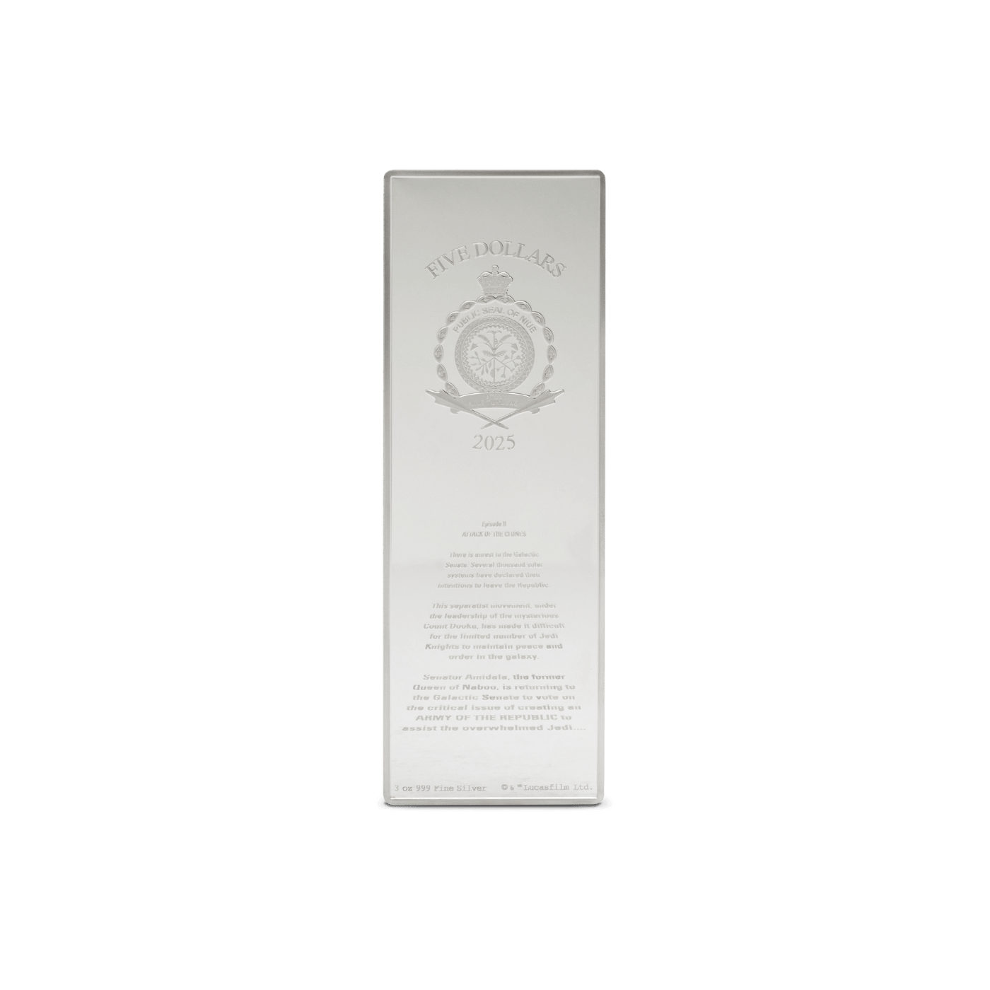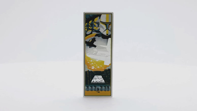 Celebrate the epic continuation of the Star Wars™ prequel trilogy with this exclusive 3oz pure silver collectible, honoring Star Wars: Attack of the Clones™. As the fifth release in the Star Wars™ Poster Series, this limited-edition coin is a must-have for both dedicated collectors and Star Wars™ enthusiasts.