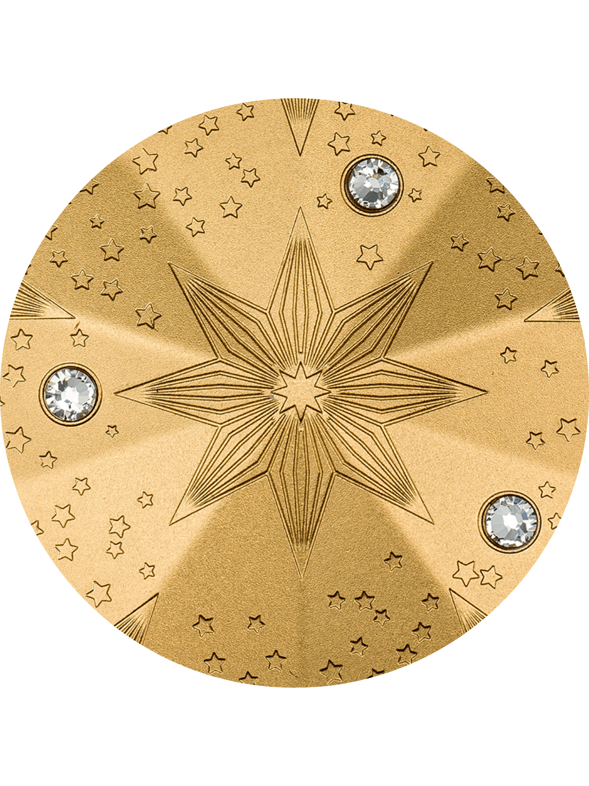 About the STARRY SKY Holiday Ornament Gilded 1 Oz Silver Coin $5 Cook Islands 2024
