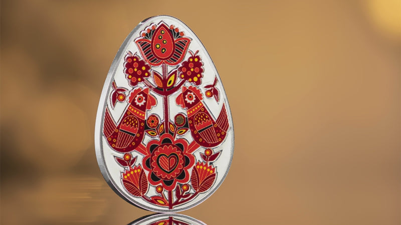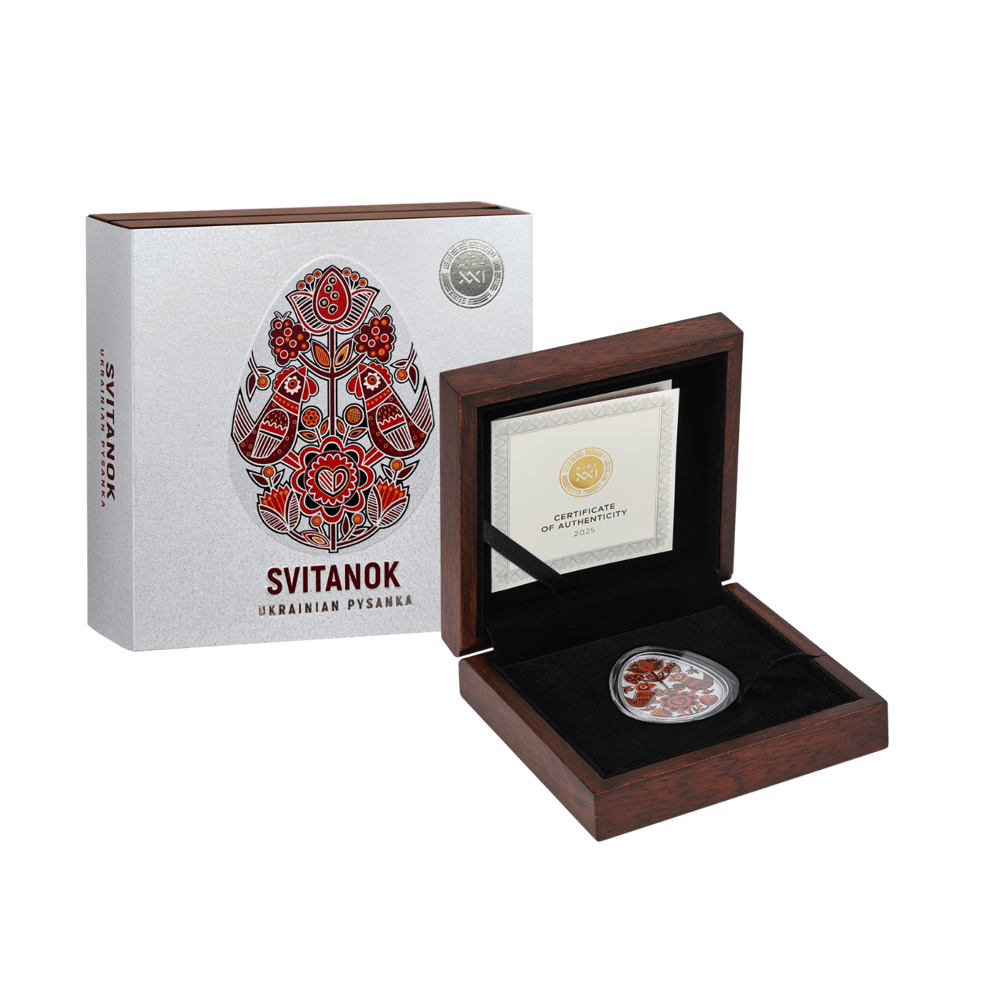 MINT XXI proudly presents ‘Svitanok,' the premier piece of the new 'Ukrainian Pysanka' collection. Pysanka showcases the traditional Ukrainian art of egg decoration, where skilled artisans carve or color intricate designs onto eggs, creating a tapestry of symbolic ornaments. This 1-ounce proof-like silver coin brilliantly captures vibrant patterns in a modern interpretation of Ukrainian pysanka. 'Svitanok,' meaning 'dawn' in Ukrainian, embodies a new beginning and the spirit of renewal. Every detail is crisply reflected in the coin's proof-like quality and skillfully adapted to its unique oval shape.