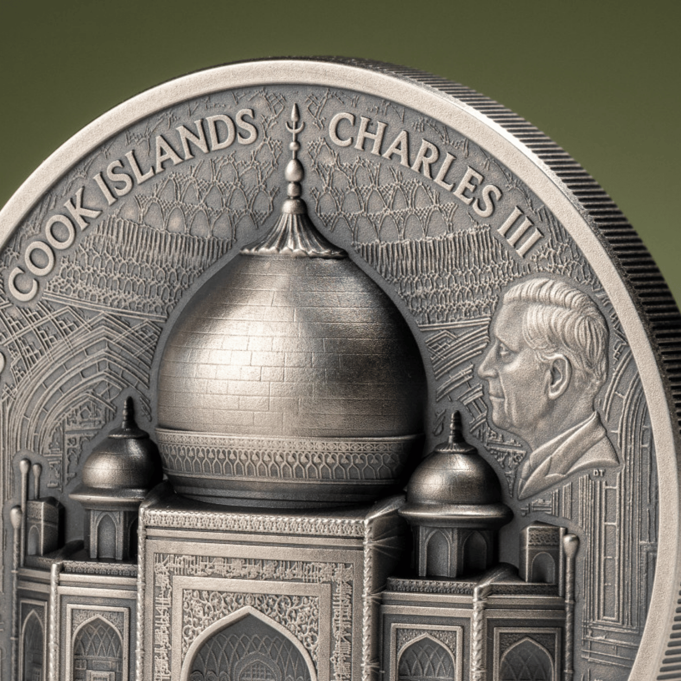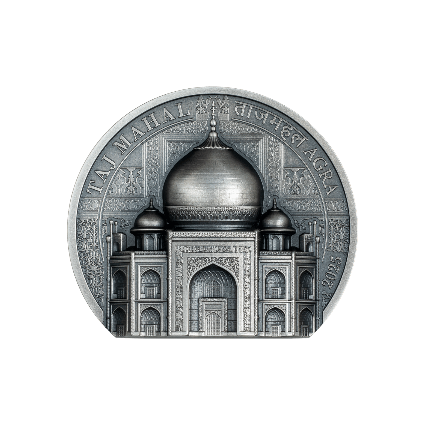 Completed in 1648, the Taj Mahal in Agra, India, was built by Shah Jahan in memory of his wife Mumtaz Mahal. Its iconic white marble dome, intricate minarets, and gemstone inlays attract millions of visitors annually. This freestanding coin, the 4th in the series, features ultra-high relief and antique finish, showcasing the Taj Mahal‘s architectural brilliance and interior views of the tomb. A numismatic masterpiece celebrating eternal love.
