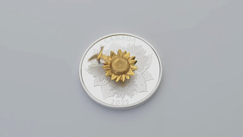 Celebrate the warmth and wonder of summer with this interactive 5 oz fine silver coin from the Royal Canadian Mint. Showcasing a beautifully detailed goldfinch and sunflower, the design comes to life as the gravity-activated bird circles the bloom when the coin is tilted. Both the bird and flower are enhanced with yellow gold plating, capturing the golden glow of summer in motion. With a limited mintage of just 1,250 worldwide, this extraordinary coin blends nature, play, and craftsmanship into one collectible masterpiece.