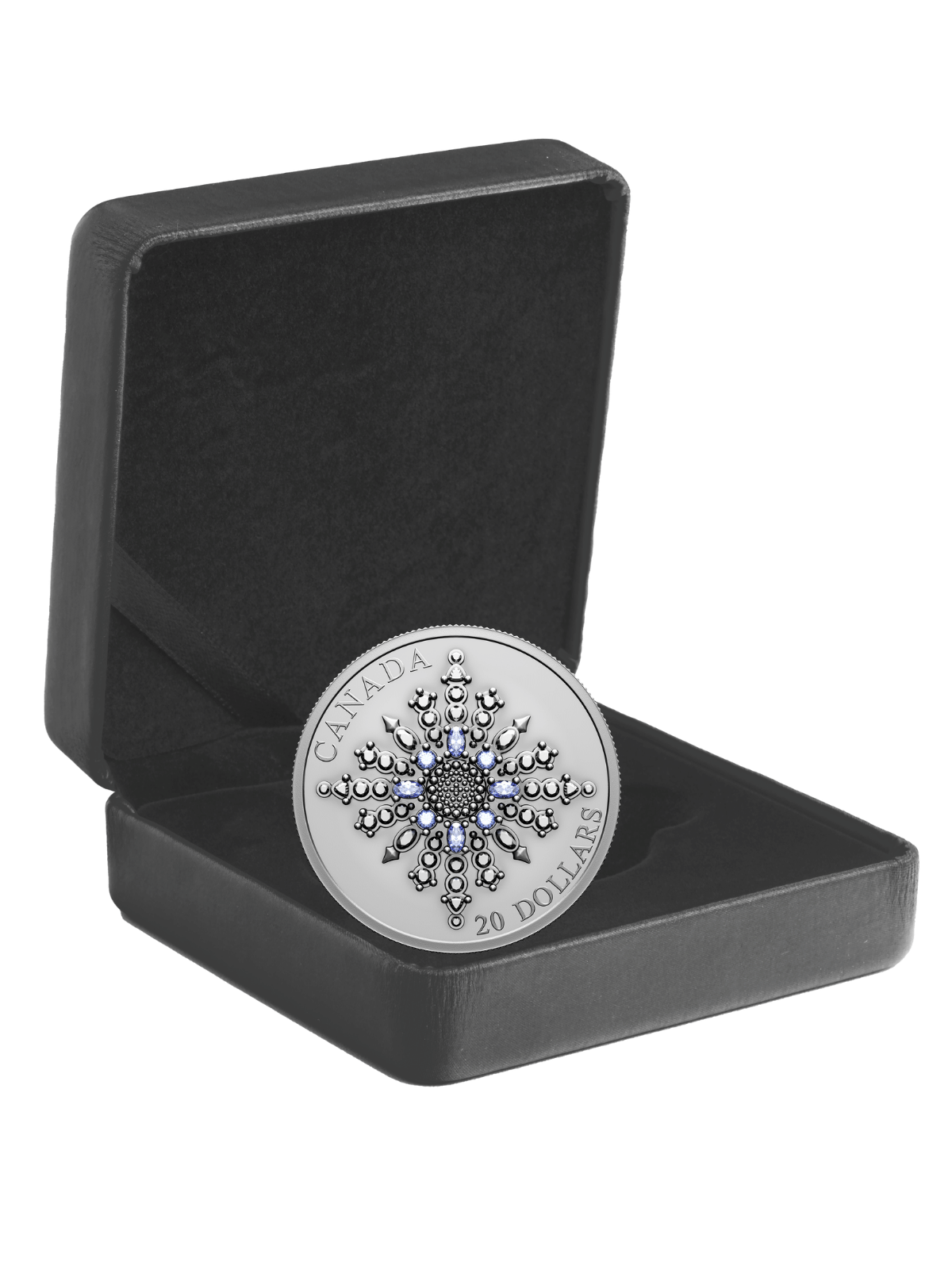About the THE SAPPHIRE JUBILEE SNOWFLAKE BROOCH 1 Oz Silver Coin $20 Canada 2024