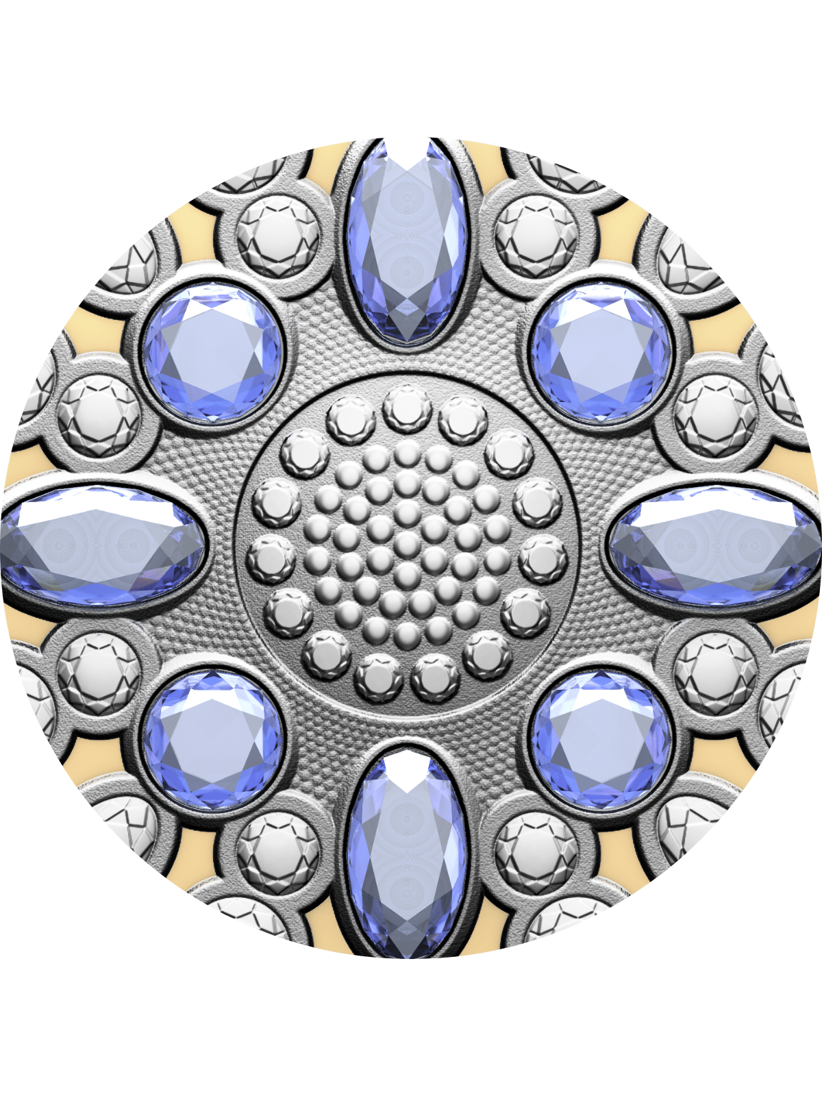 This brooch has been beautifully replicated on a 99.99% pure gold coin, the first in the Crown Jewels series. The coin features a platinum-plated engraved brooch set with eight sparkling royal-blue sapphires, capturing the winter-white brilliance and regal elegance of the original piece. With only 250 coins minted, this limited edition is a must-have for collectors, accompanied by a serialized certificate from the Royal Canadian Mint and an additional certificate of authenticity for the sapphires.