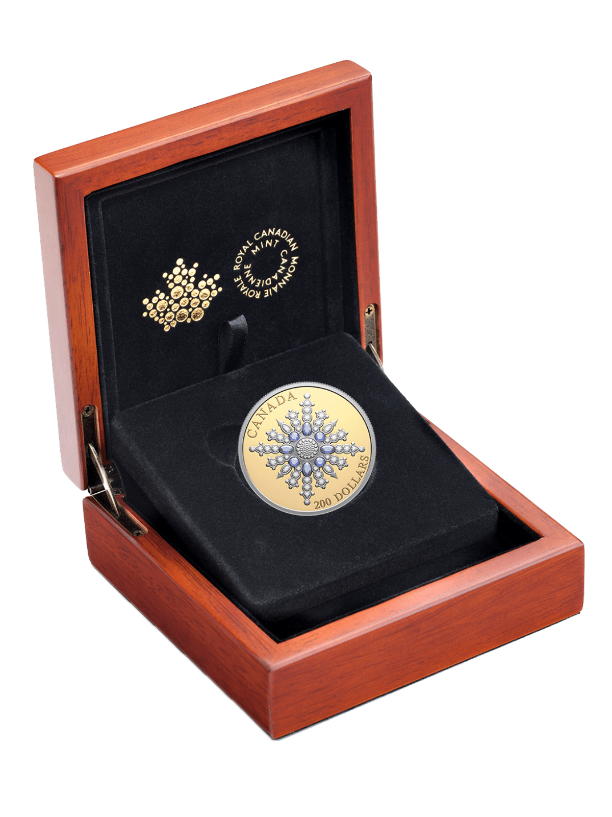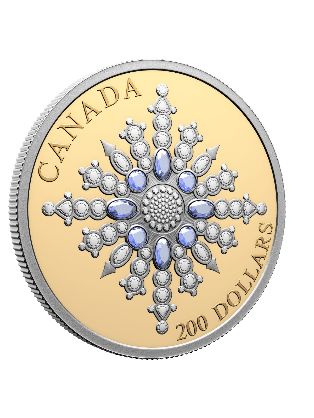 About the THE SAPPHIRE JUBILEE SNOWFLAKE BROOCH 2 Oz Gold Coin $250 Canada 2024