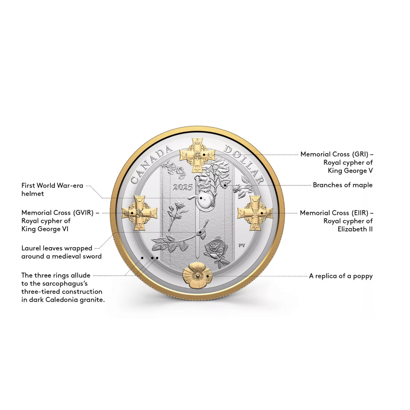 - Join us in paying respect to Canada’s Unknown Soldier. The Fine Silver Proof Dollar features a Remembrance theme in 2025, in honour of the 25ᵗʰ anniversary of the completion of the Tomb of the Unknown Soldier—a site of memory and mourning—at the National War Memorial in Ottawa.