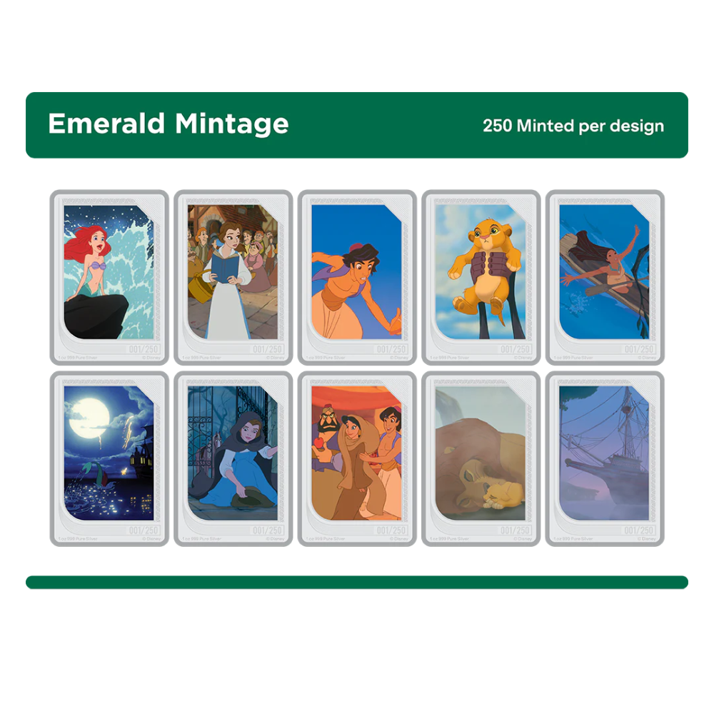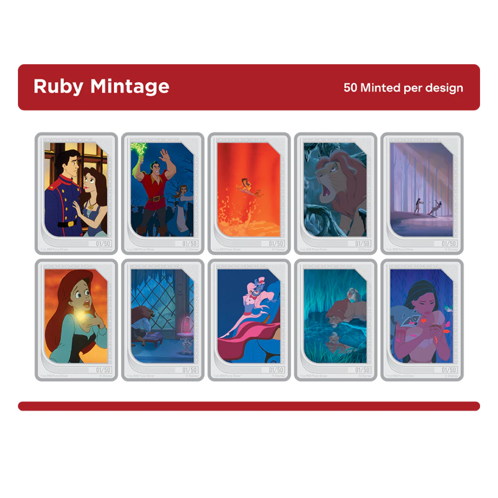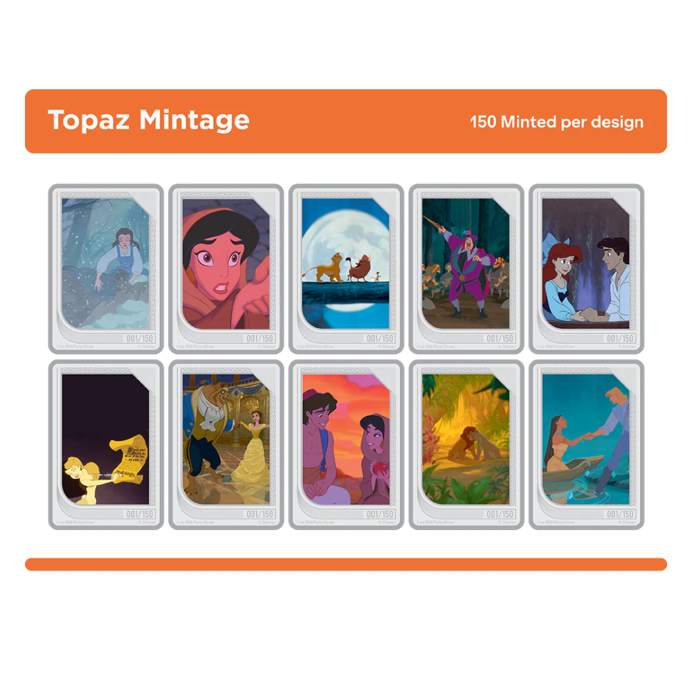 Step back into the Disney Renaissance, the iconic decade that reshaped animation and inspired generations around the world. This premium mystery-box collection captures the timeless artistry of beloved classics including The Lion King, Aladdin, Beauty and the Beast, Pocahontas, and The Little Mermaid, each beautifully struck in precious metal and produced in strictly limited mintages.