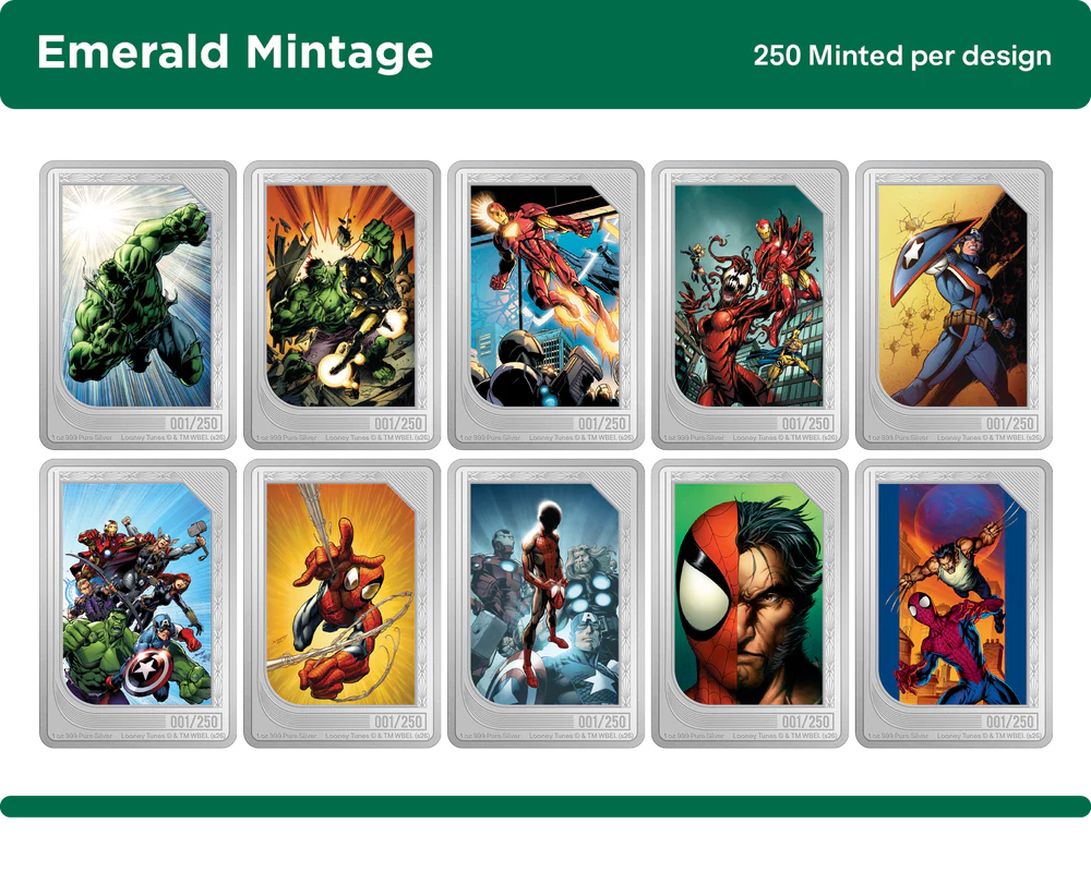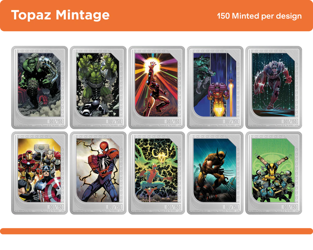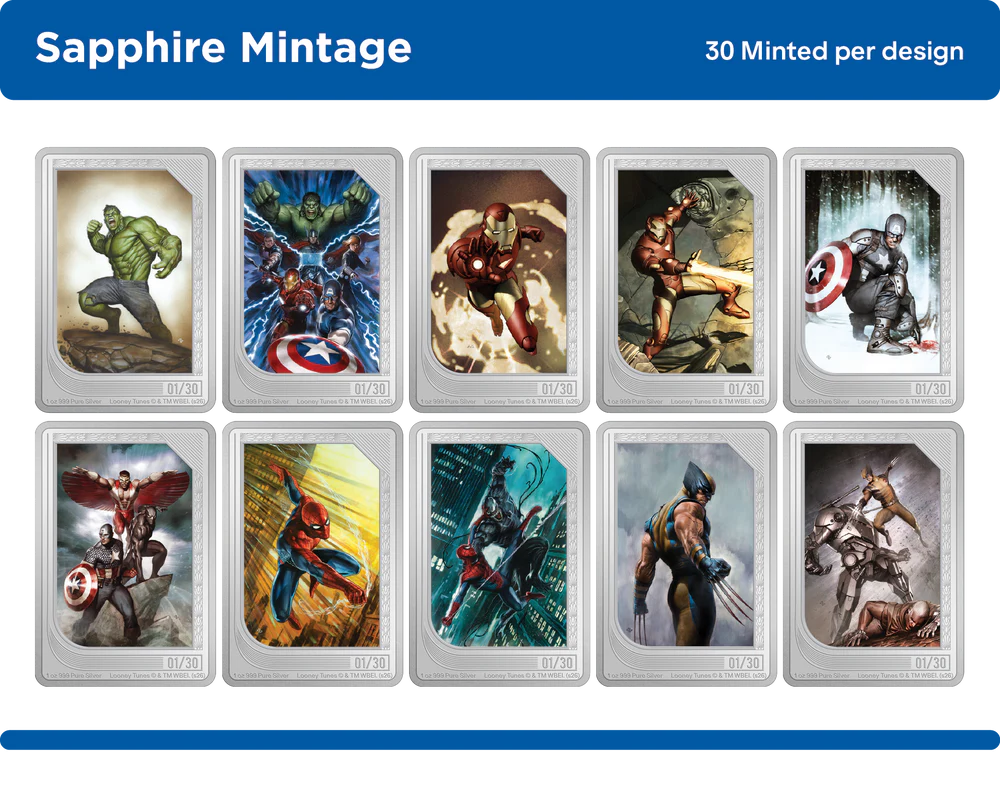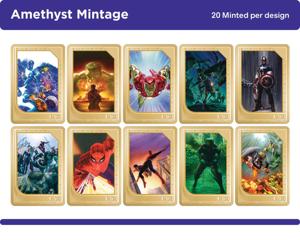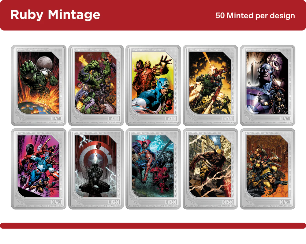 You might uncover Hulk mid-transformation in a dramatic fine art aesthetic with gold gilding. Or perhaps Captain America appears in bold expressionist energy, struck in luminous 999 pure silver. Every tier offers a new way to collect your favourite heroes — with mintages becoming increasingly rare as you climb the artistic ladder.