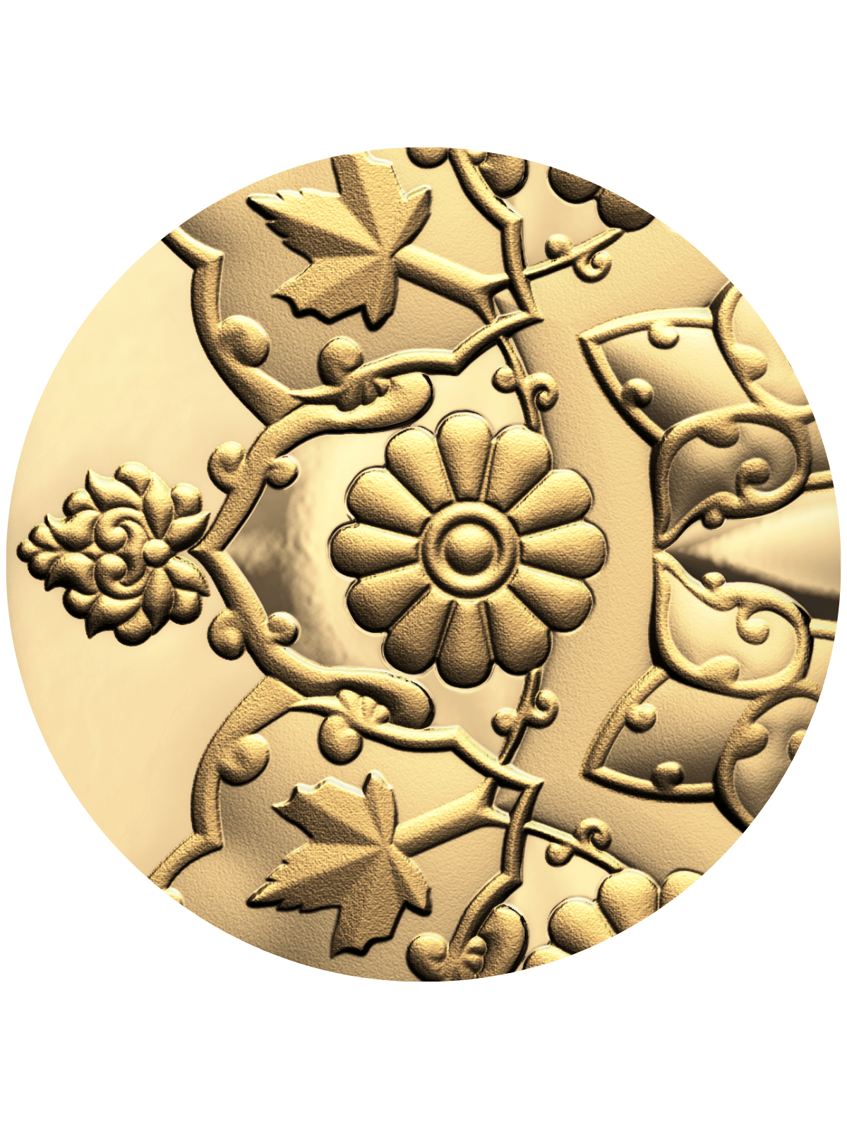This beautiful 1 Oz Gold coin is dedicated to the celebration of Canada's Diversity, incorporating the contributions of different traditions in a mandala conveying Transcendence and Tranquility. The coin has Proof quality, a Turquoise Insert, serrated edges, and comes in a case, along with a Certificate of Authenticity. Limited mintage of 275 pieces worldwide.