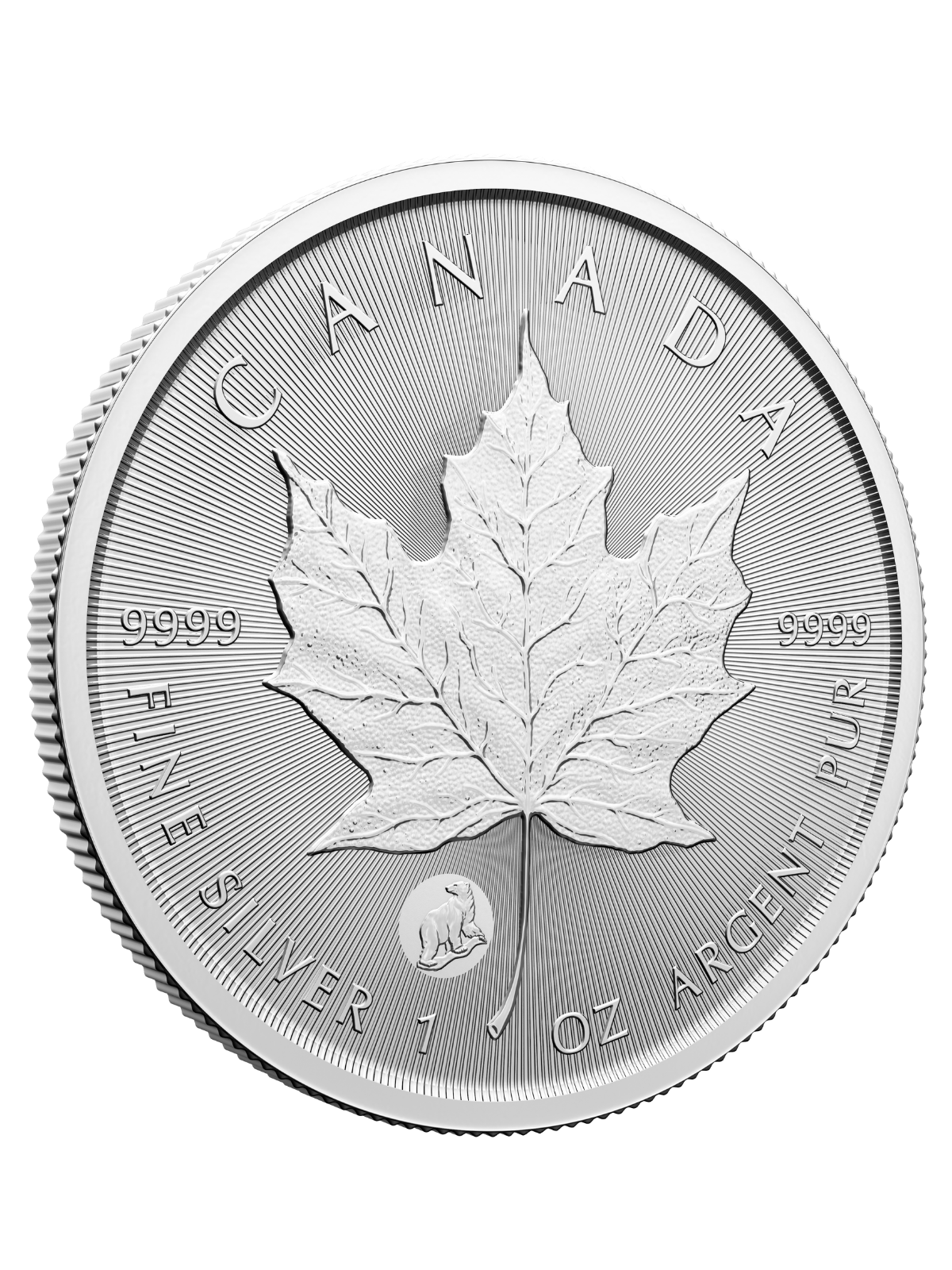 The 2024 Treasured Silver Maple Leaf First Strikes with the Polar Bear Privy Mark offer a remarkable and enduring gift option. Minted on the inaugural days of production, these bullion coins feature the new Canadian effigy of His Majesty King Charles III, embodying 99.99% pure silver excellence. The inclusion of a special polar bear privy mark distinguishes these coins, adding a touch of uniqueness for various occasions. This premium bullion collection from the Royal Canadian Mint is renowned for its strict quality standards, with First Strikes holding additional prestige for being among the initial productions. Available one month ahead of regular core bullion releases, these coins, handled with special care during manufacturing, come with cutting-edge security features, including radial lines and BULLION DNA™ technology, ensuring authenticity. With a limited mintage of 25,000 coins worldwide, these Treasured Silver Maple Leaf bullion coins are presented in eye-catching, specially designed packaging that has been redesigned for easier handling, featuring a QR code for quick access to additional information.