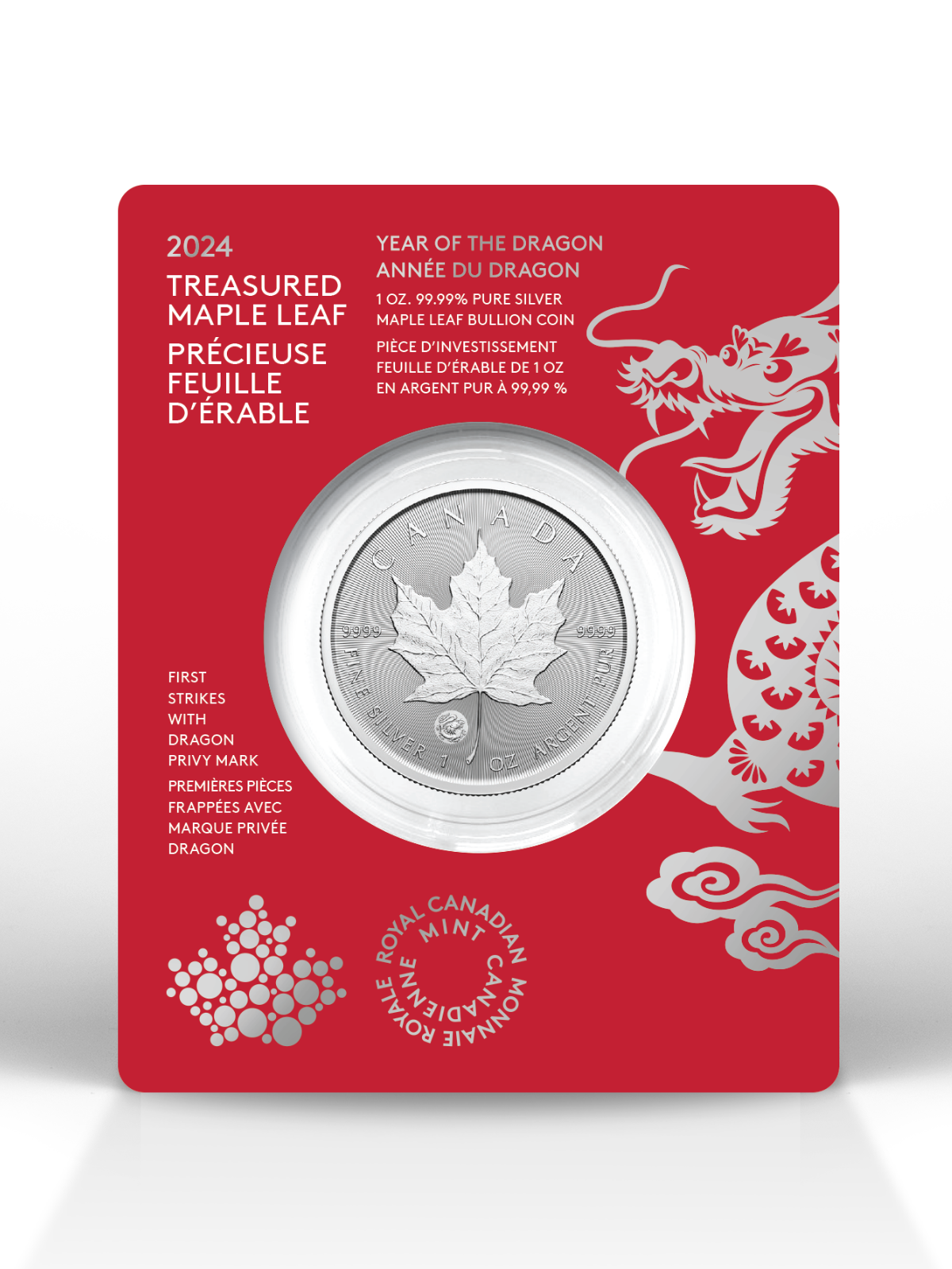 About the TREASURED SILVER MAPLE LEAF FIRST STRIKES Year of the Dragon Privy Mark (Premium Bullion)