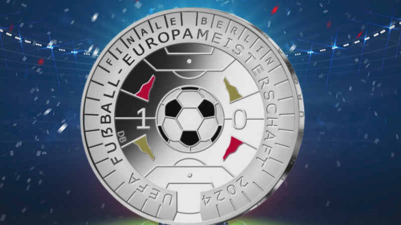 UEFA EURO FOOTBALL Silver coin honours the UEFA Euro Cup, one of the most followed football championships in the world. The coin features a wonderful design on the reverse, with a football sporting the colors of the German flag! It comes in a capsule, along with the Certificate of Authenticity. Limited mintage TBC.