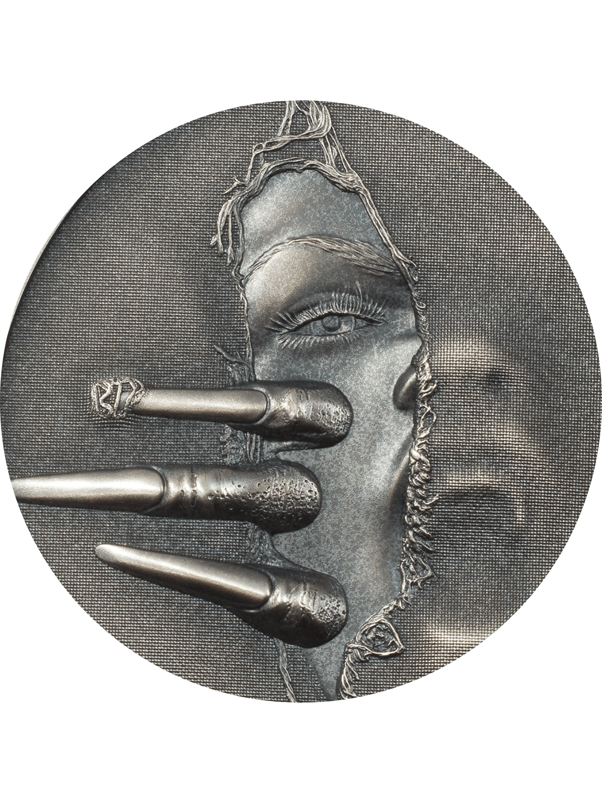 UNTRAPPED 1 Oz Silver coin is the fourth issue in the “Trapped” series and depicts someone trying to escape. The coin features a beautifully reticular design thanks to the Smartminting technology, has an Antique Finish quality and comes in a case, along with the Certificate of Authenticity. Limited mintage of only 999 pieces worldwide!