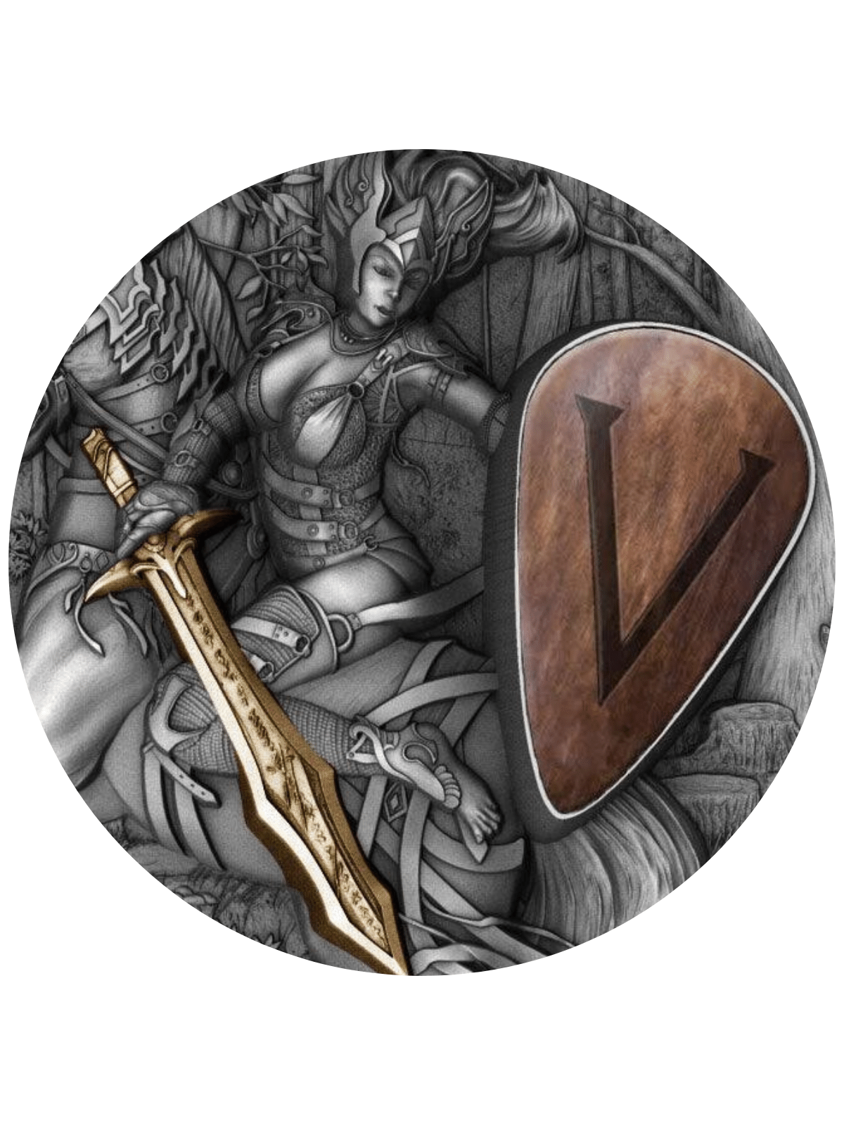 The second release in the captivating "Woman Warrior" series, this coin showcases the awe-inspiring Valkyrie, depicted in all her glory, wielding a sword with determination