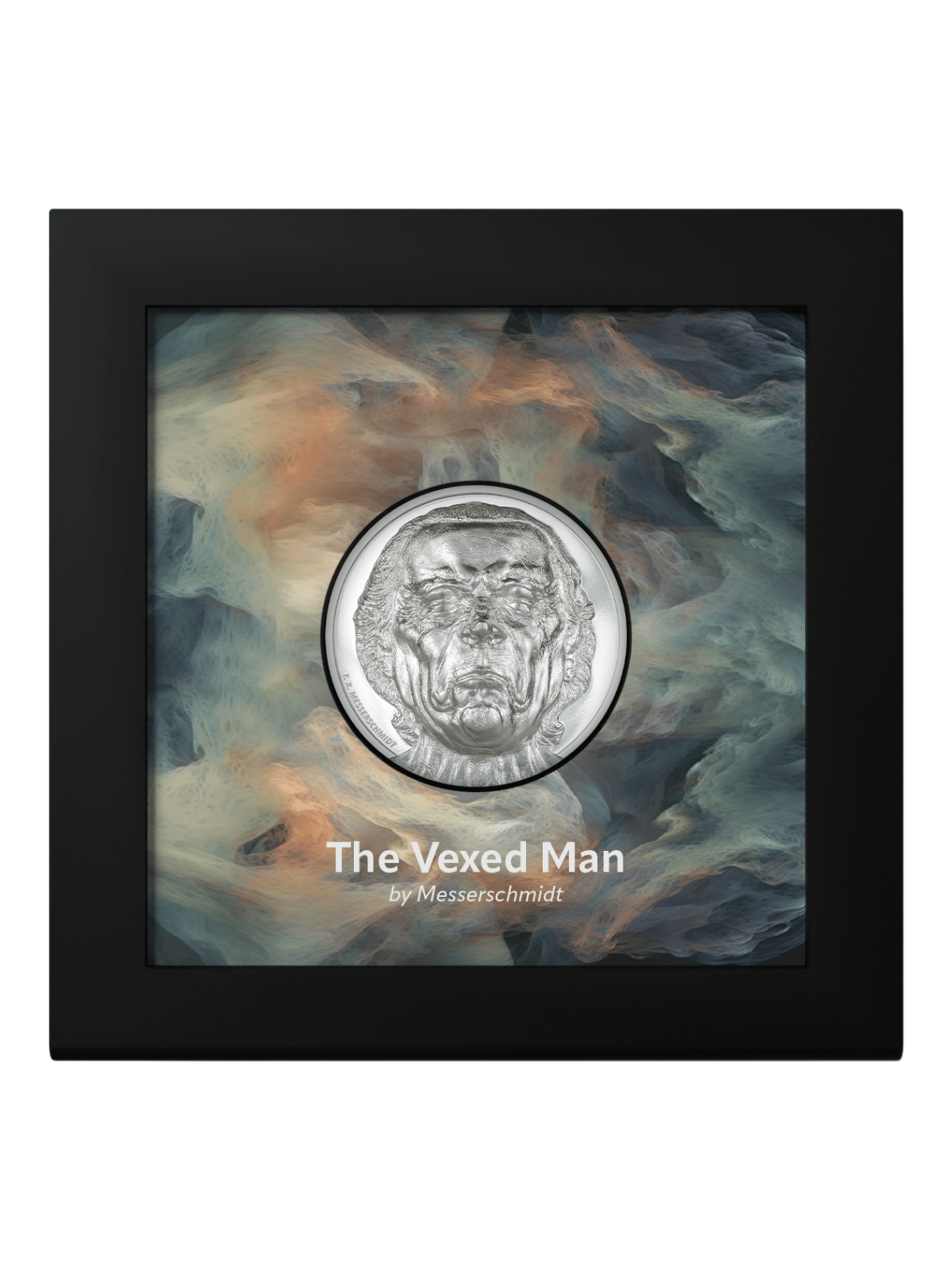 VEXED MAN 2 Oz Silver coin depicts the image of a close-up of a Vexed Man as a striking emotion human beings can experience in life. The coin has a Proof quality, features the Smartminting technology and has a stunning design. It comes in a case, along with a Certificate of Authenticity. Limited mintage of 999 pieces worldwide!