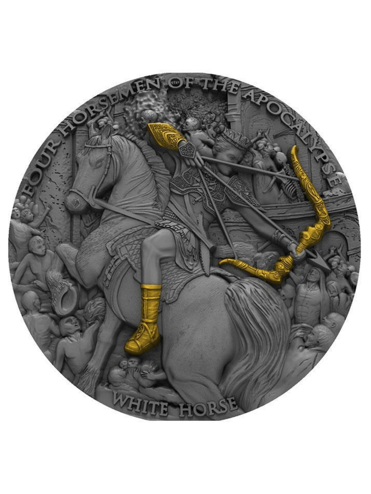 The inaugural release in the captivating "Four Horsemen of the Apocalypse" series, this coin is dedicated to the first Horseman—the White Horse