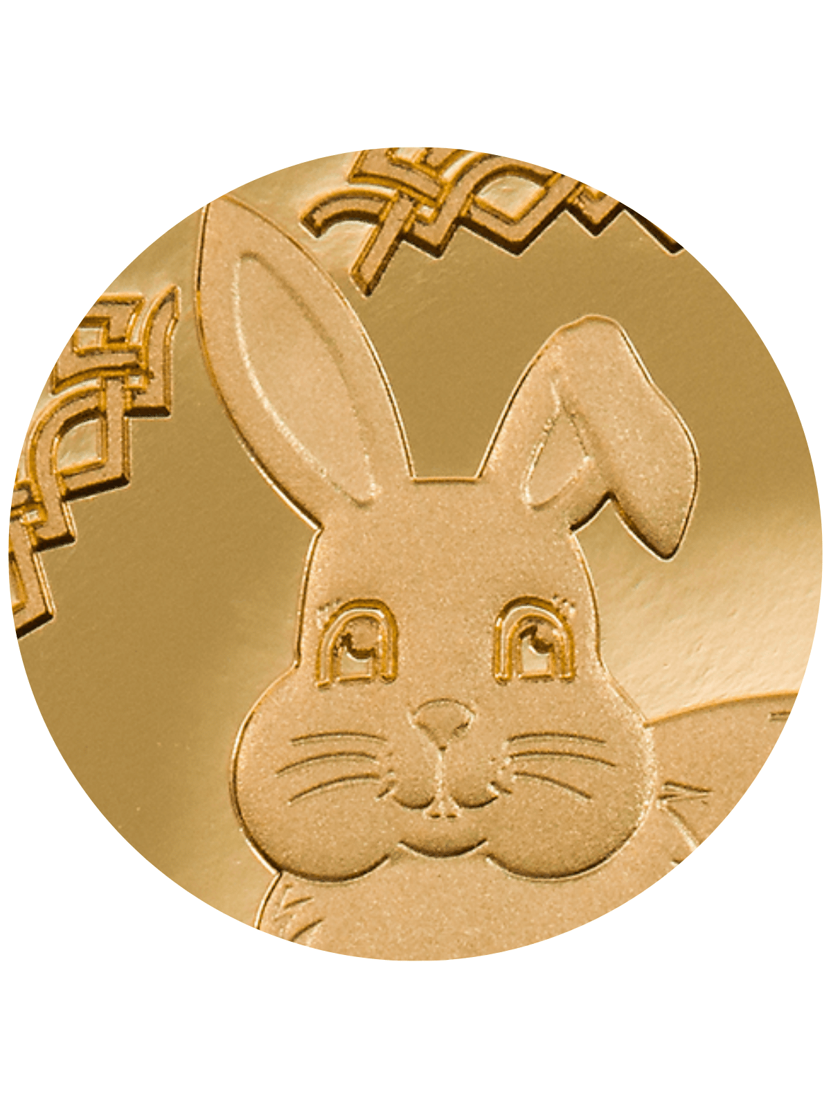 YEAR OF THE RABBIT Gold coin is an issue for the 7th Anniversary of the series Lunar collection, dedicated to those born in the year of the rabbit. The coin has an astonishing design and comes with the Certificate of Authenticity incorporated. Limited mintage of 5000 pieces worldwide.