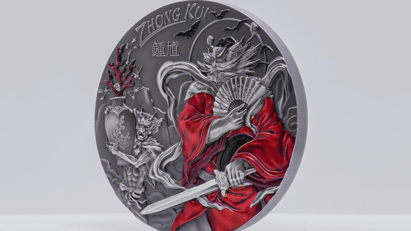 ZHONG KUI 3 Oz Silver coin is the first release in the “Asian Mythology” series, dedicated to some of the most famous Asian mythological characters. In this edition – Zhong Kui. The coin features the Smartminting© technology, has an Antique Finish quality with dark highlights and comes in a beautiful case, along with the Certificate of Authenticity. Limited mintage to only 333 pieces worldwide!